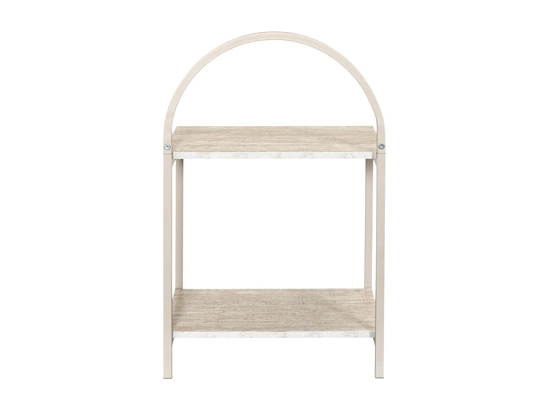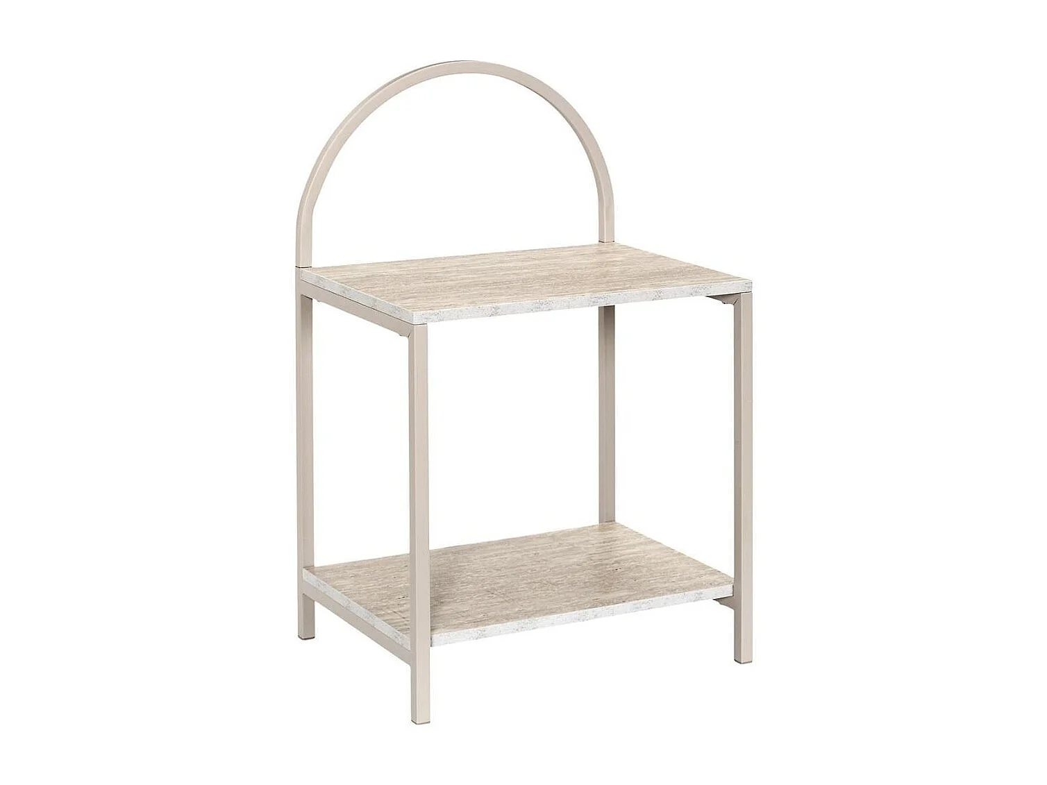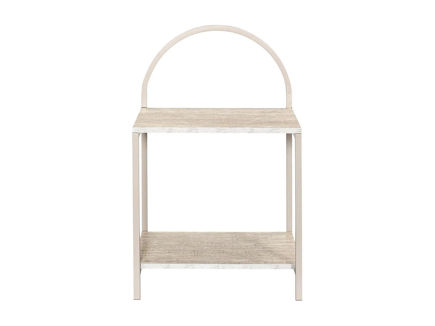 Chevet design arche 2 tablettes en métal laqué beige plateaux aspect pierre naturelle - SHANON
