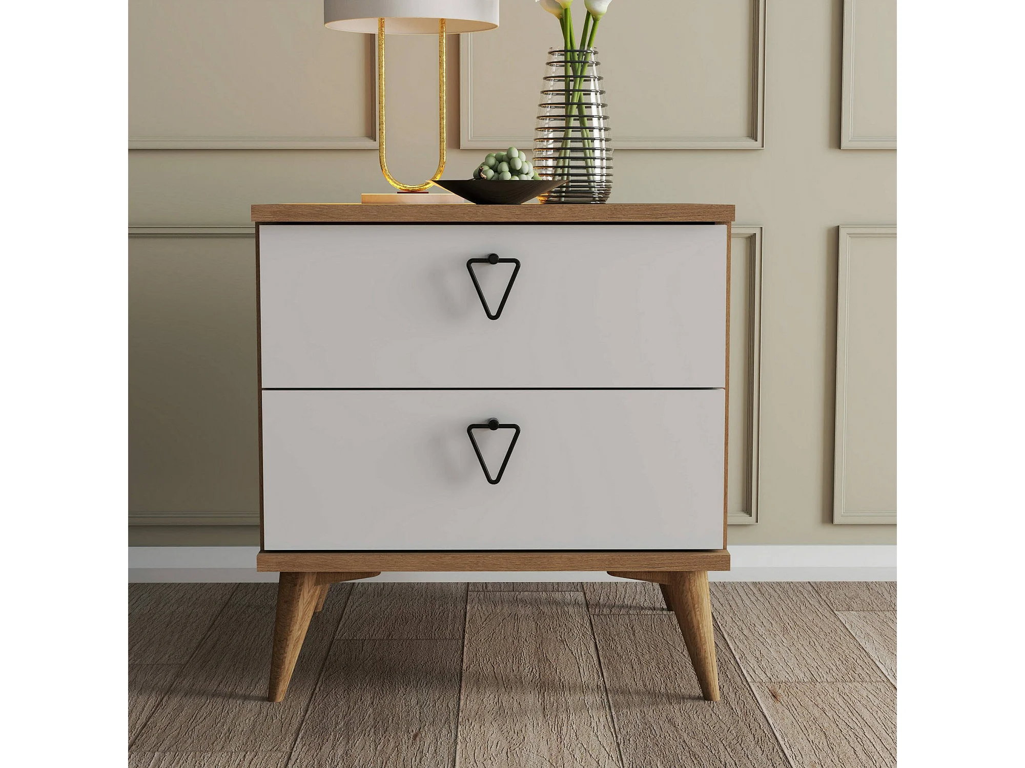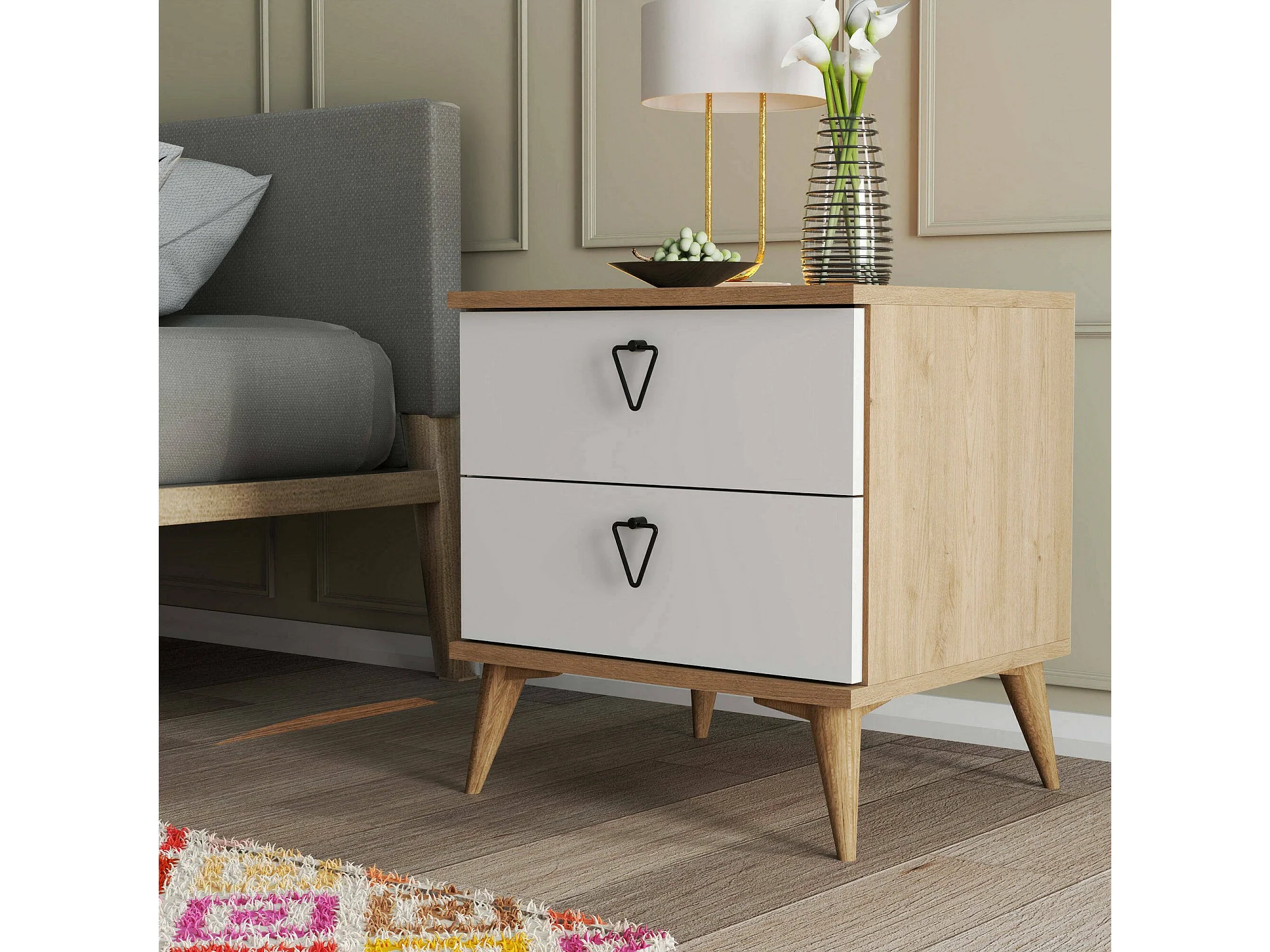 Chevet Dpraszeli, Commode basse, Table de nuit, Étagère de chevet, 52x45 h55 cm, Chêne et Blanc