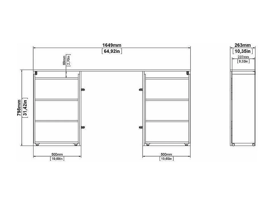 Chevet Drot, Commode basse, Table de nuit, Étagère de chevet, 165x26 h80 cm, Blanc