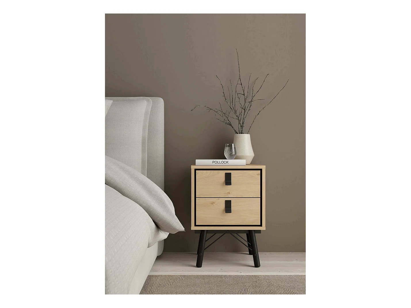 Chevet Drovell, Commode basse, Table de nuit, Étagère de chevet, 43x40 h60 cm, Chêne clair