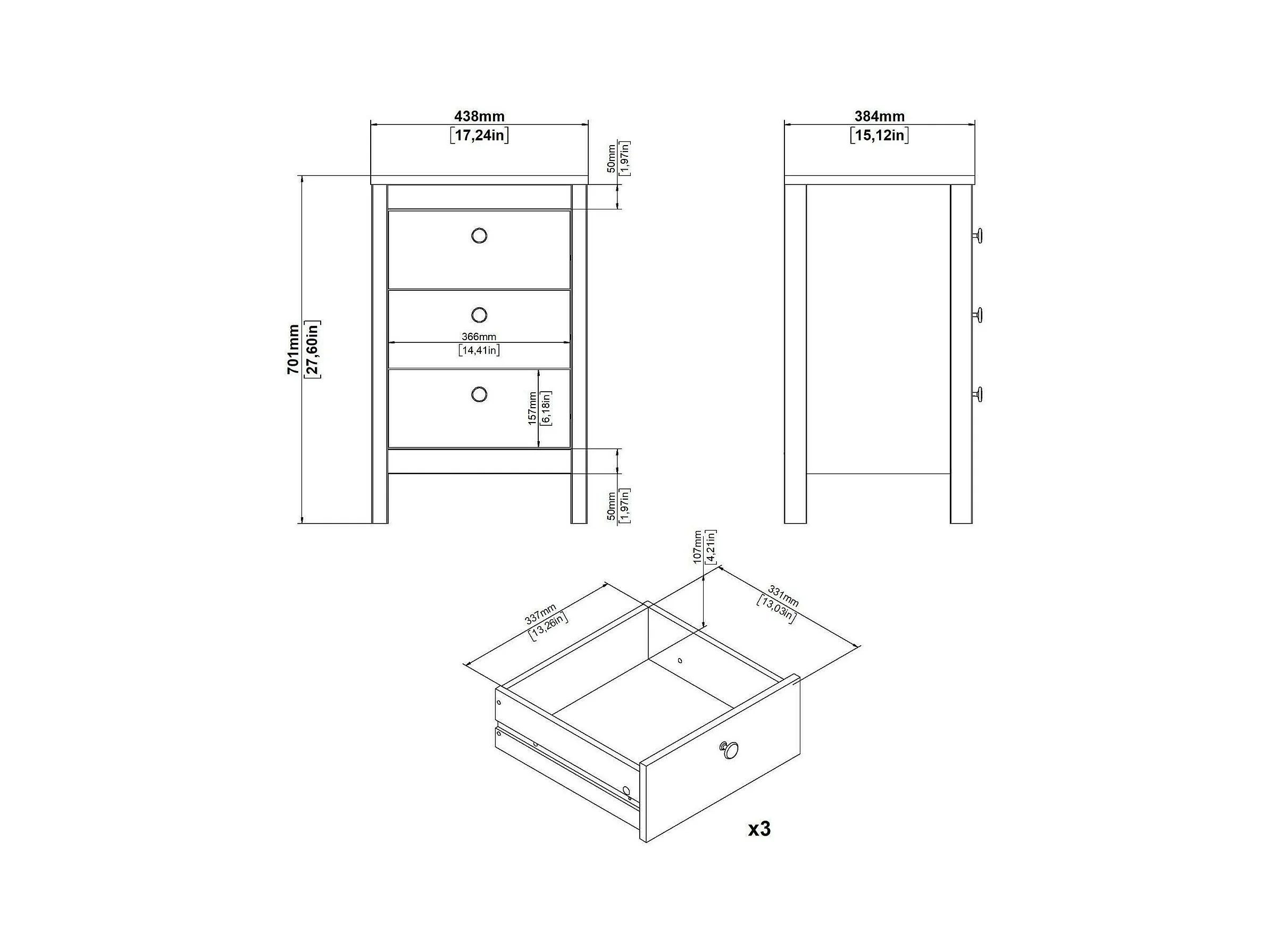 Chevet Dsain, Commode basse, Table de nuit, Étagère de chevet, 44x38 h70 cm, Blanc
