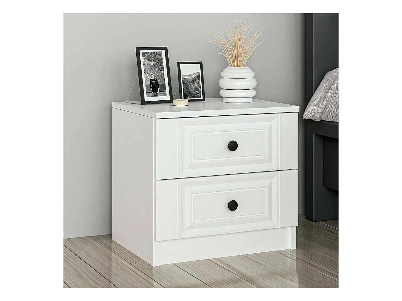 Chevet Dstuhe, Commode basse, Table de nuit, Étagère de chevet, 72x42 h77 cm, Blanc