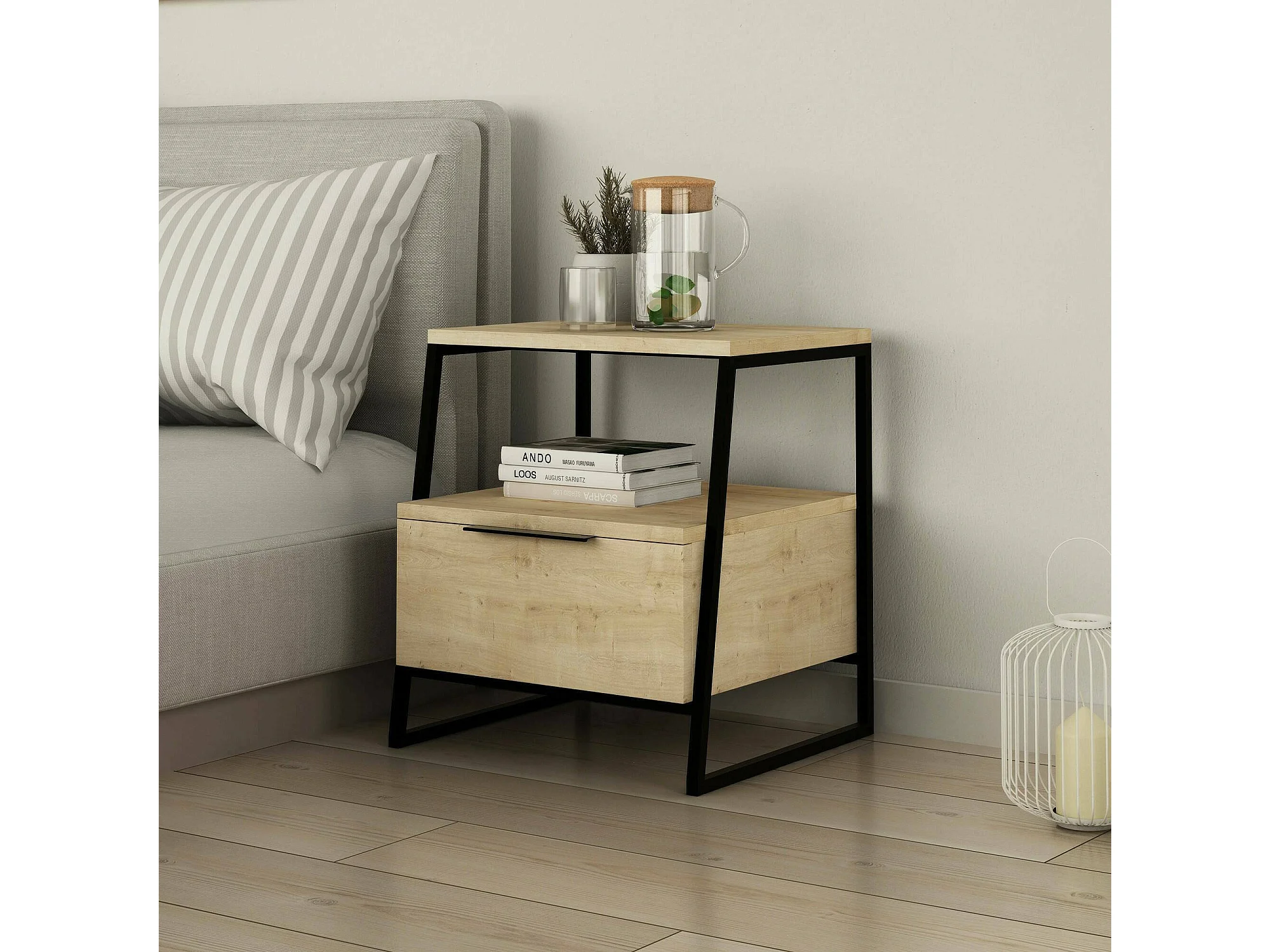 Chevet Dubhe, Commode basse, Table de nuit, Étagère de chevet, 45x40h50 cm, Chêne