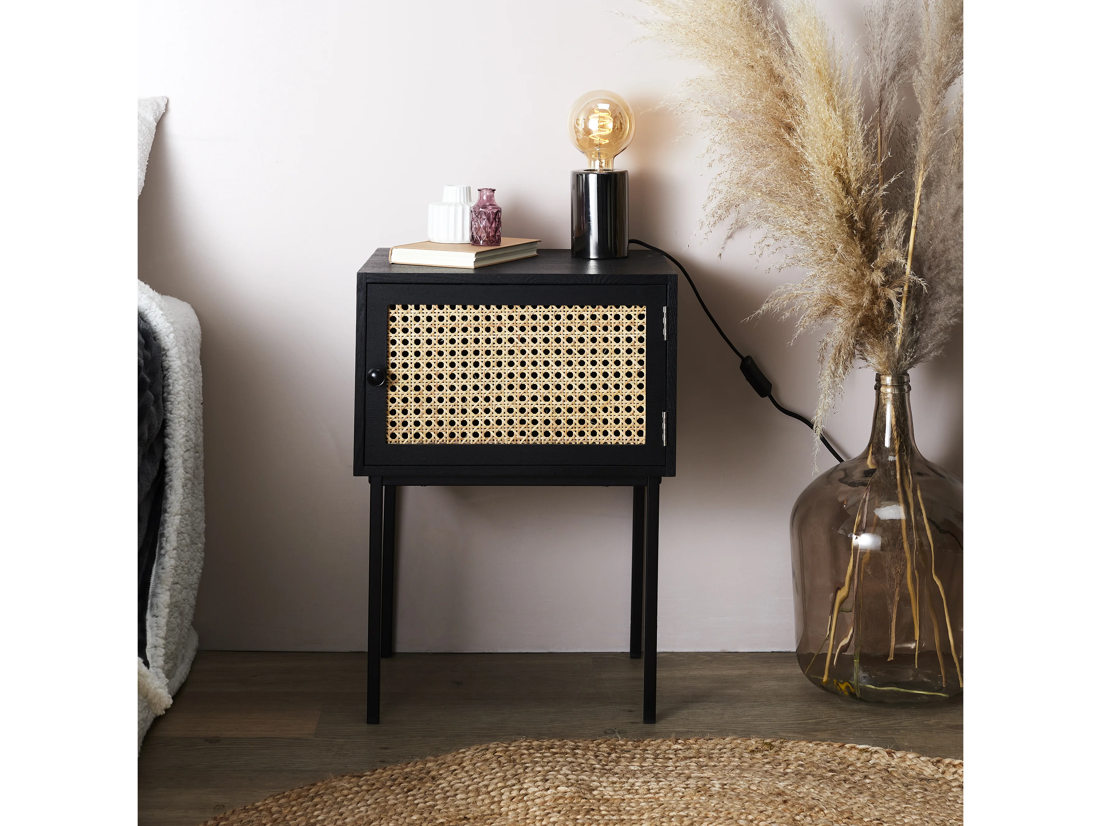 Chevet Cannage 1 Porte Noir Marron, Noir