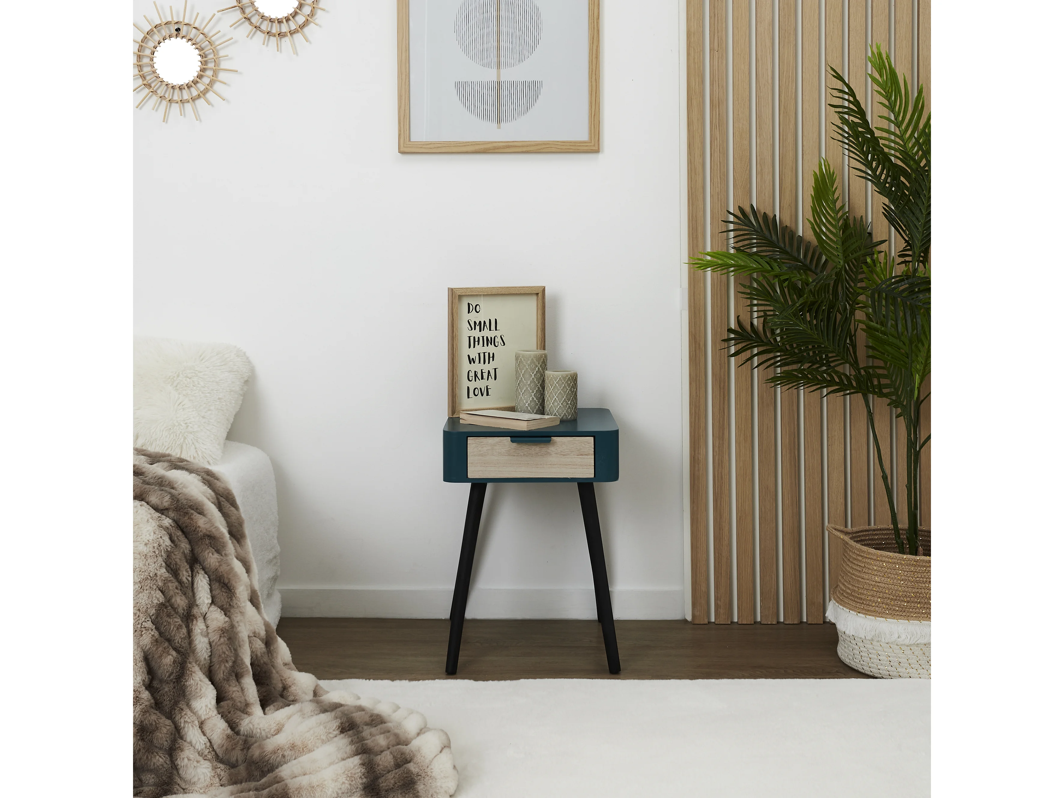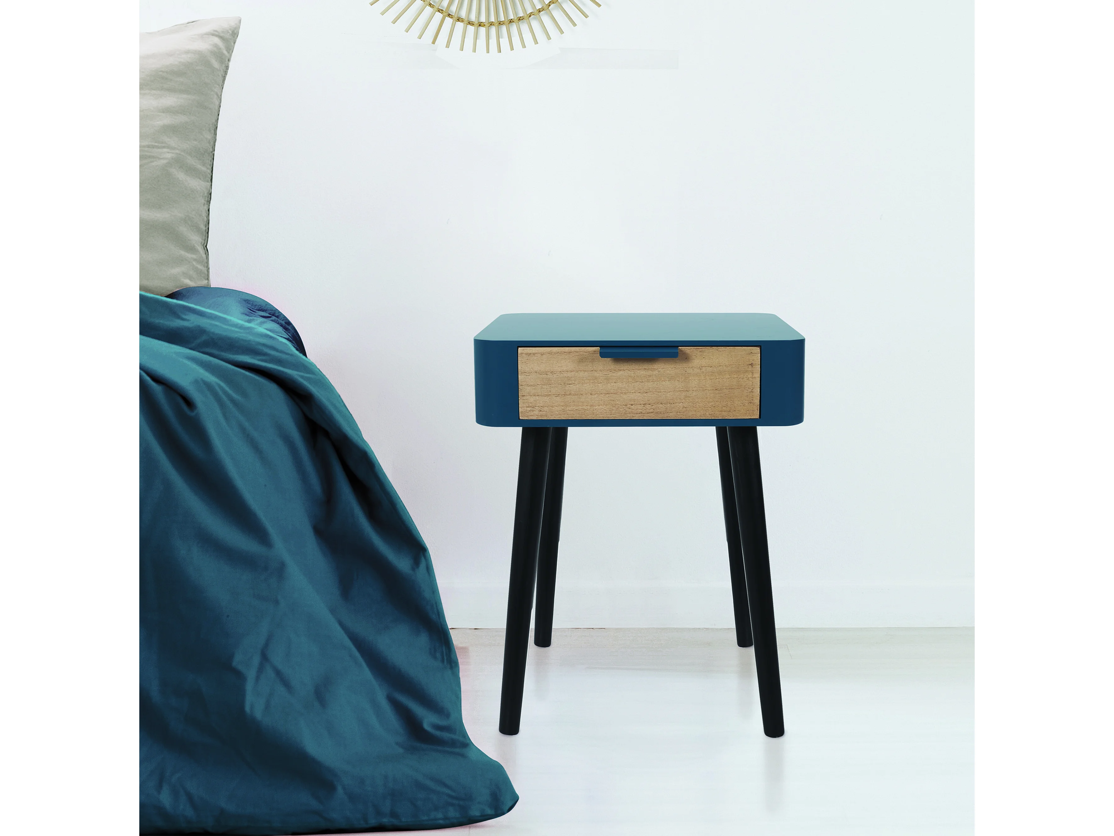 Chevet 1 Tiroir En Bois Bleu Canard Bleu