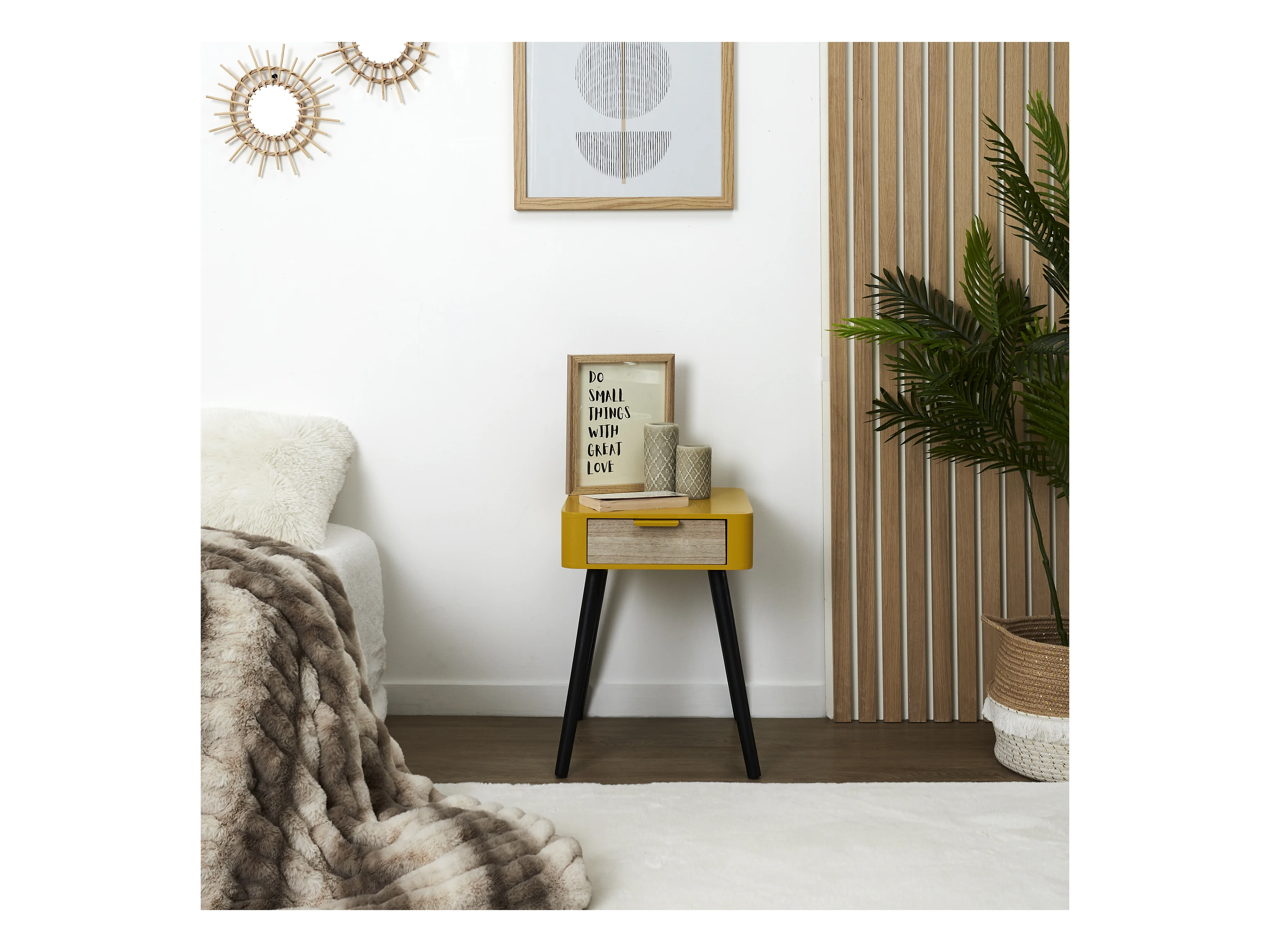 Chevet 1 Tiroir En Bois Jaune Moutarde Jaune