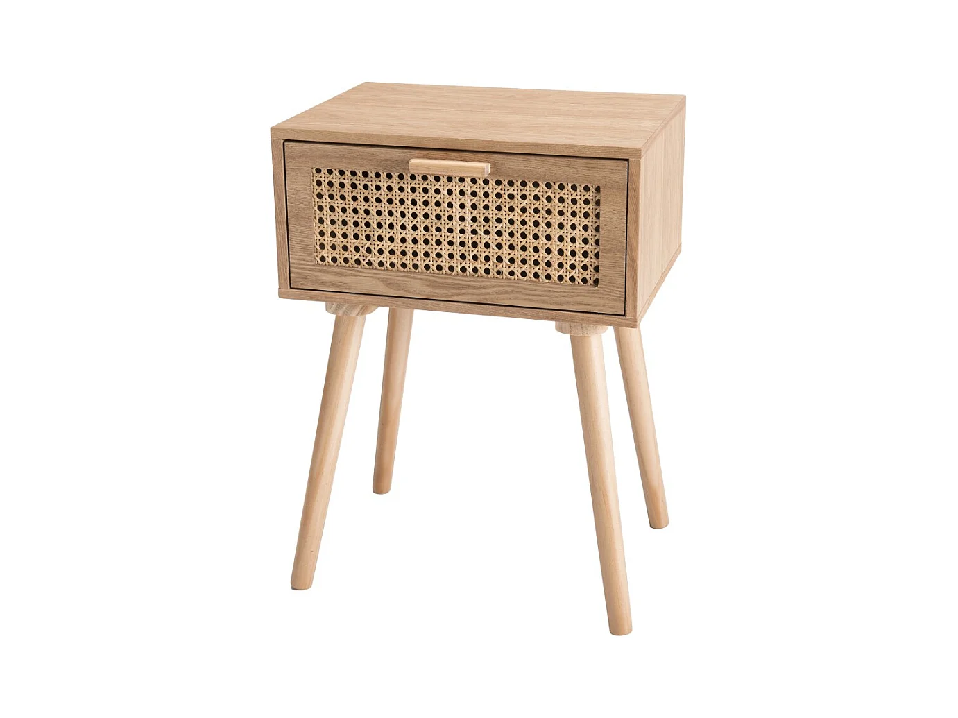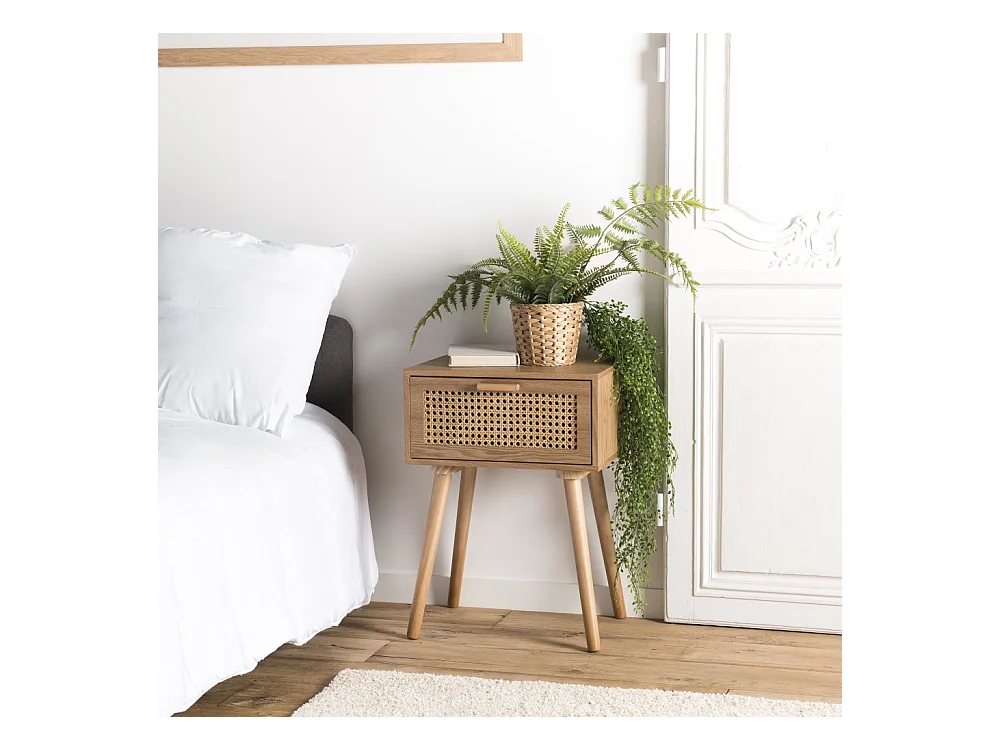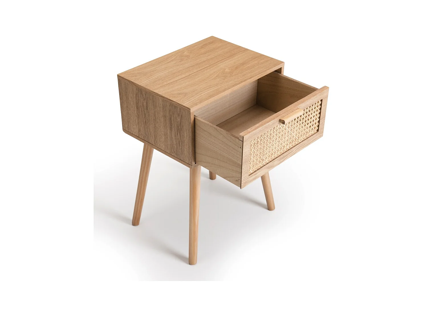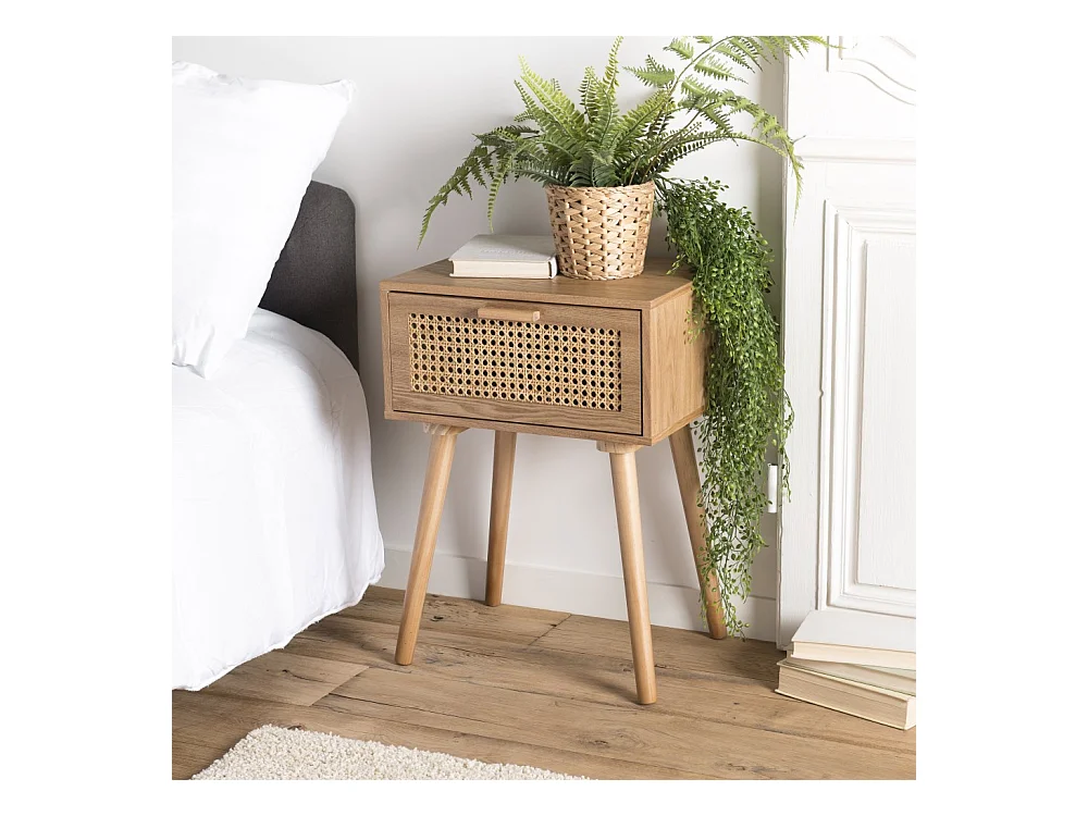 RODRIGO - Table de chevet en bois couleur naturelle 1 tiroir cannage