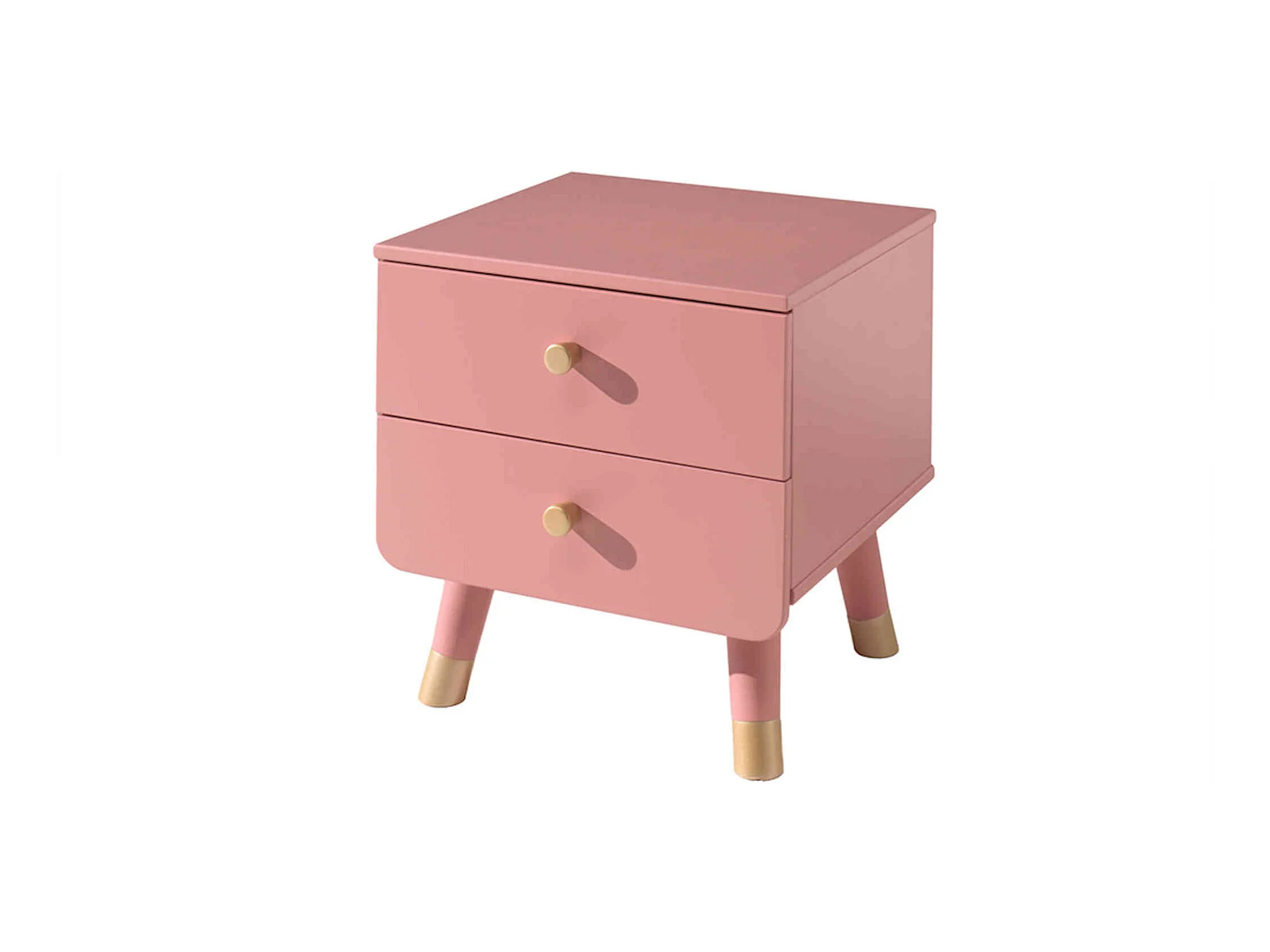 Chevet enfant 2 tiroirs en bois massif rose - CH2031