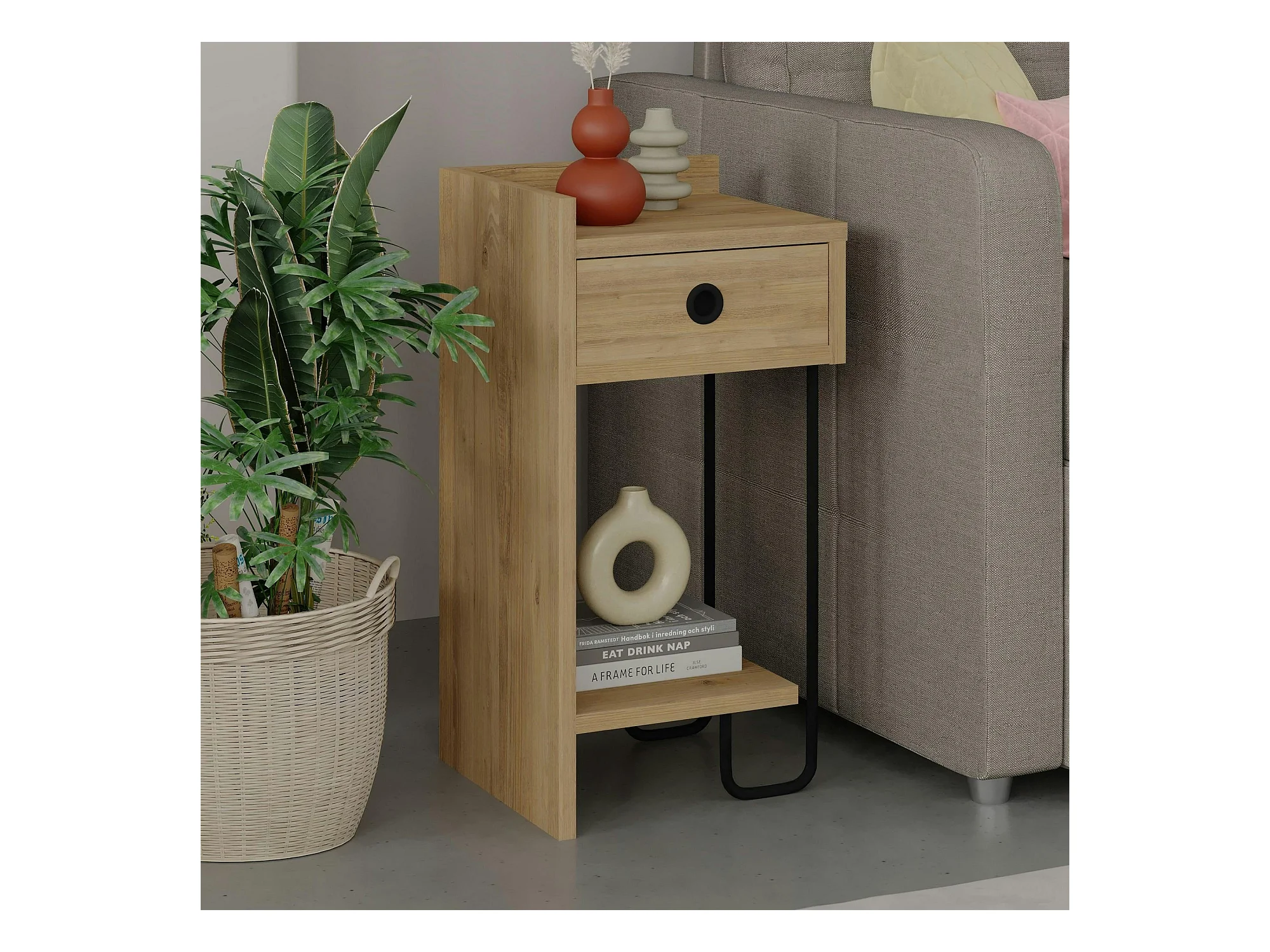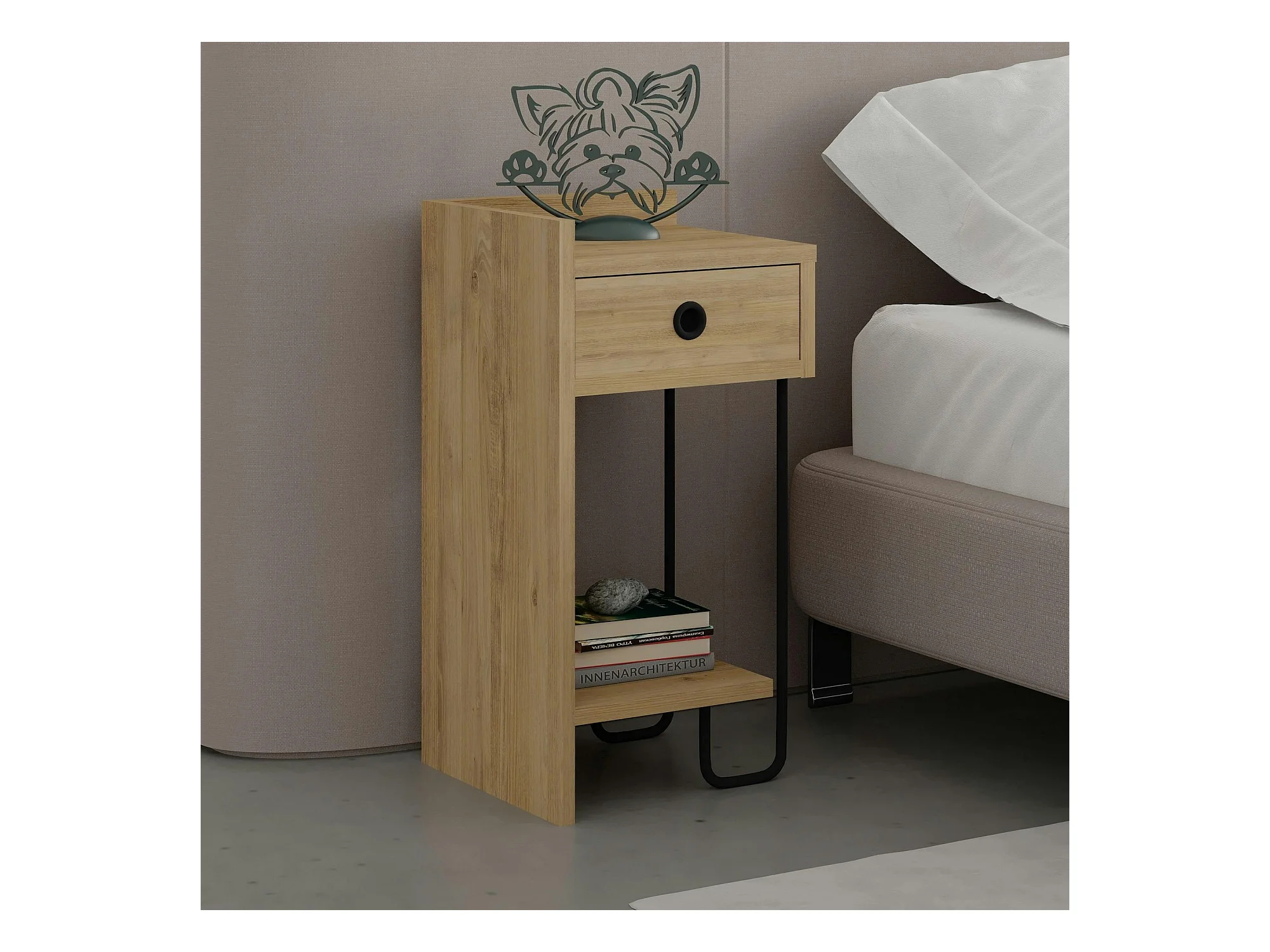 Table de nuit avec rangement effet chêne - 1 porte 1 niche JENA