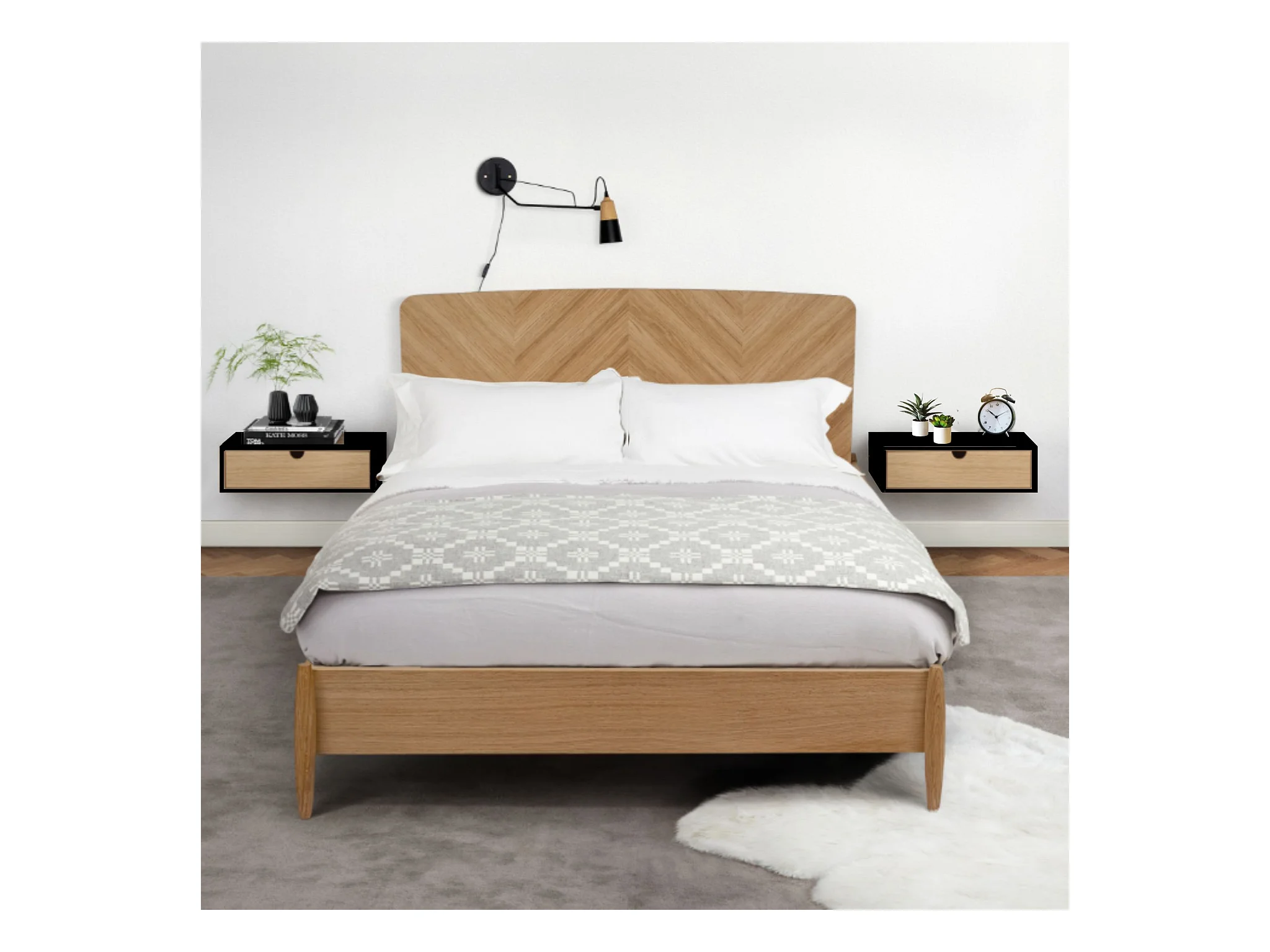 Chevet mural 1 tiroir blanc et chêne - CH0067