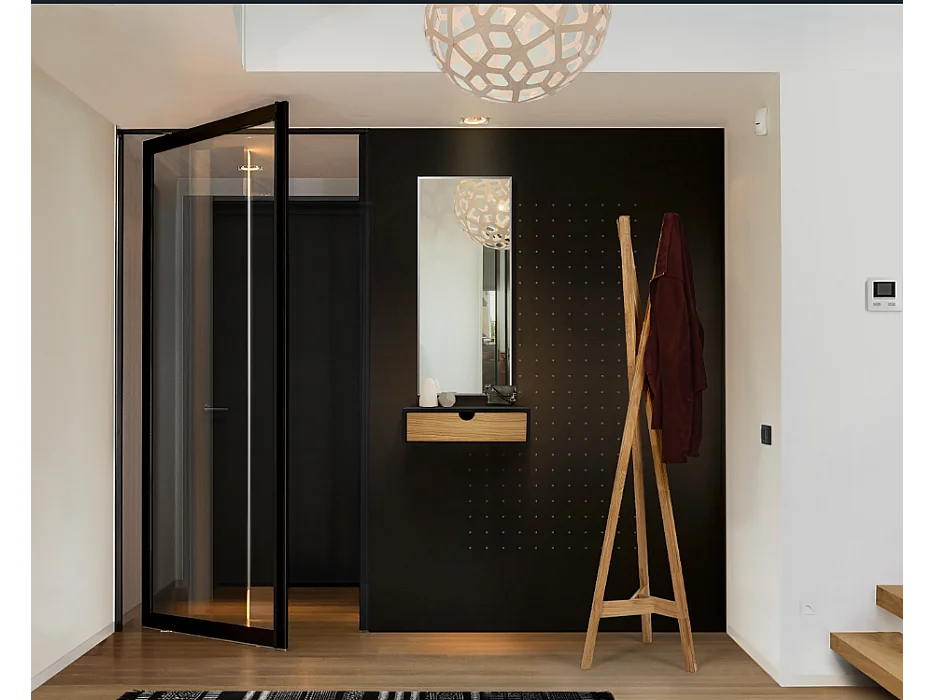 Chevet mural 1 tiroir noir et chêne - CH0067
