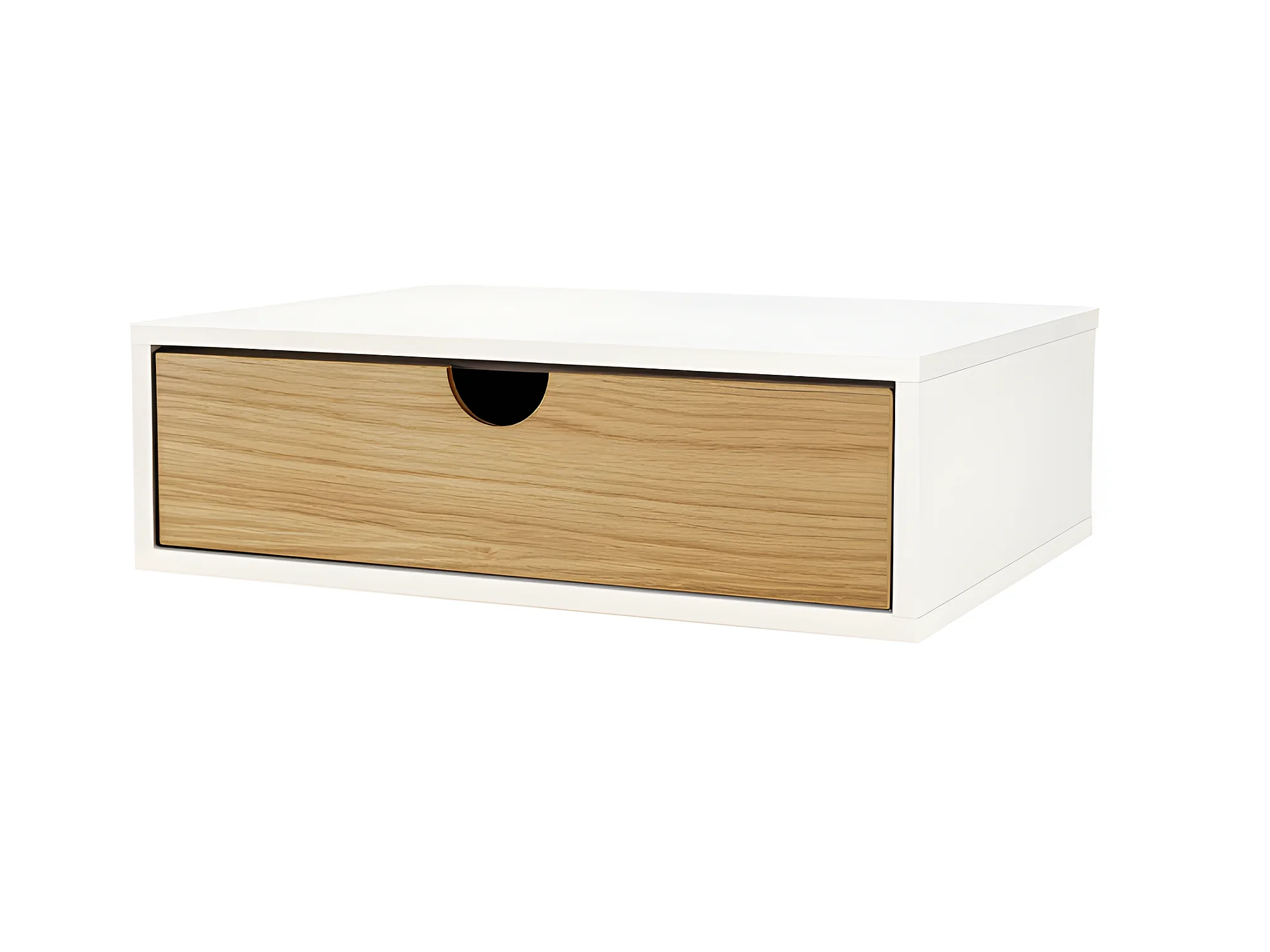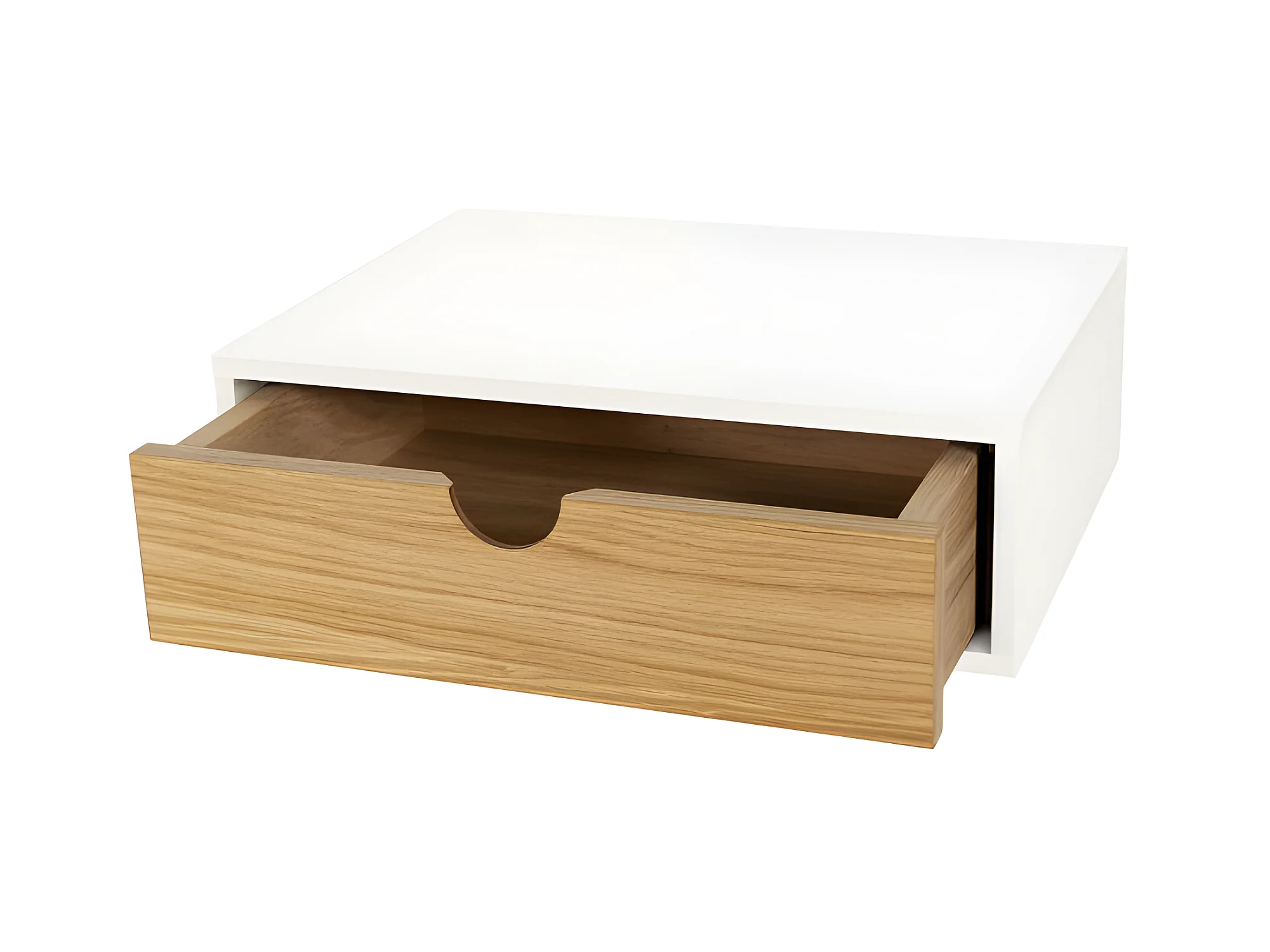 Cassie | Chevet mural à 1 tiroir en effet chêne et blanc