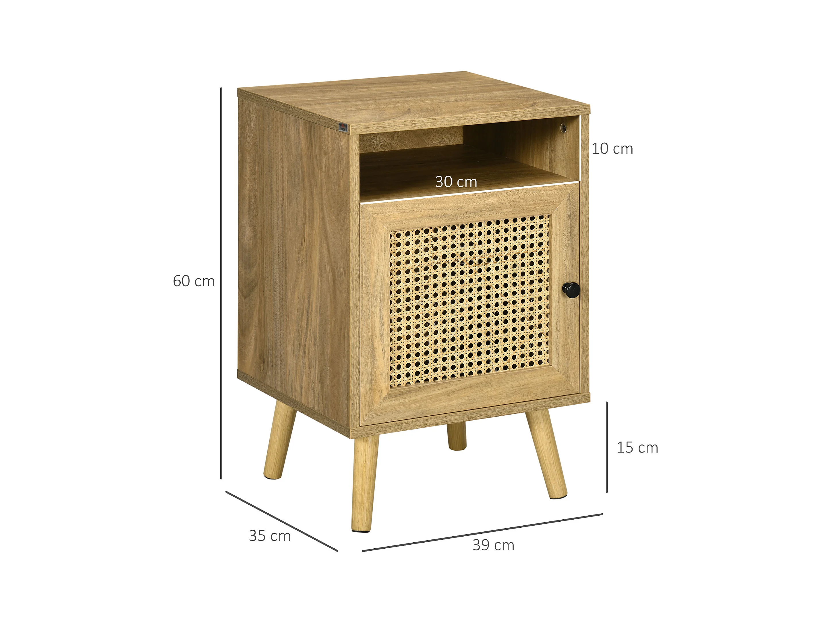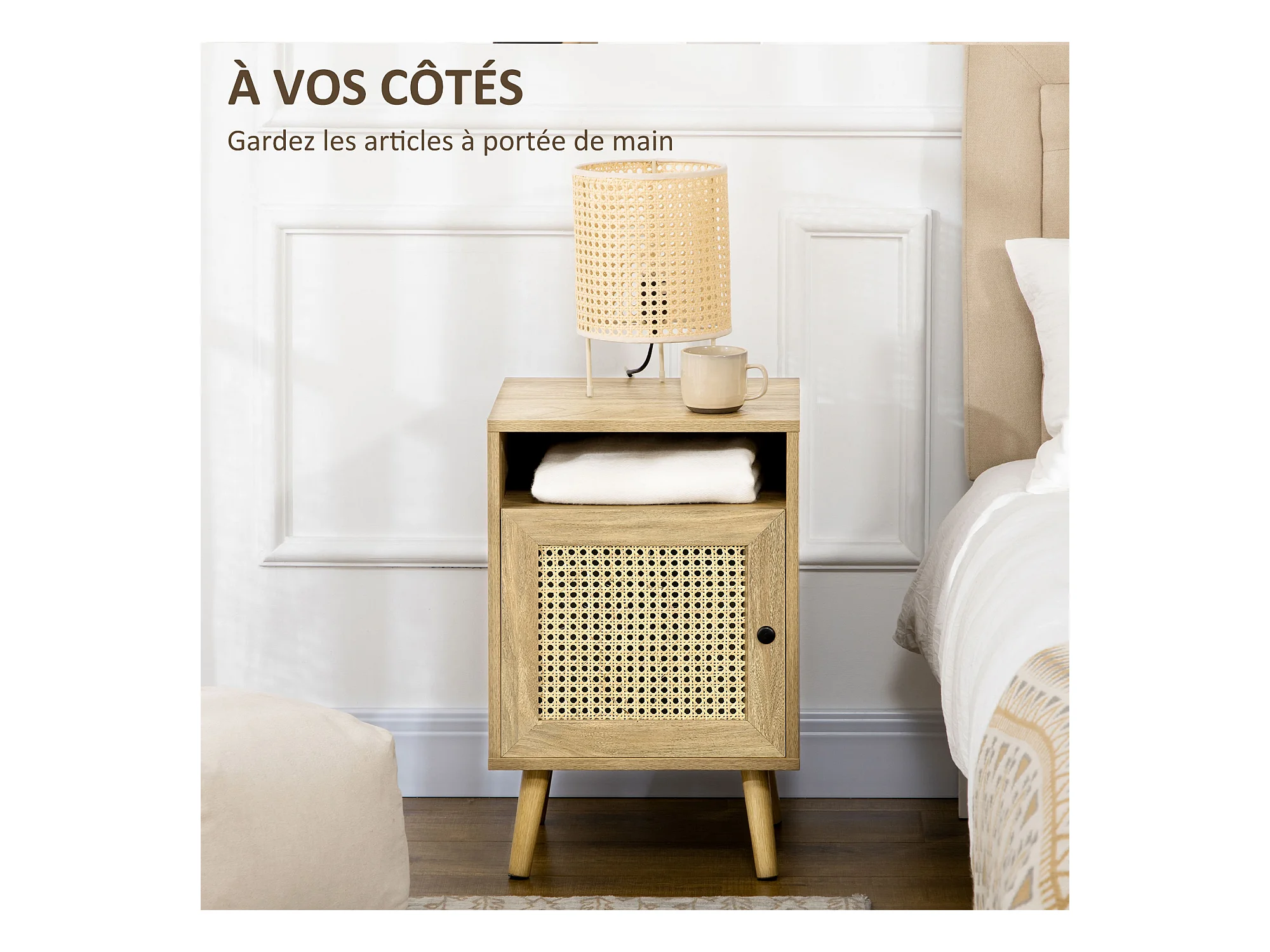 Table de chevet tiroir et étagère cannage en rotin dim. 40L x 40l x 48H cm MDF aspect bois clair