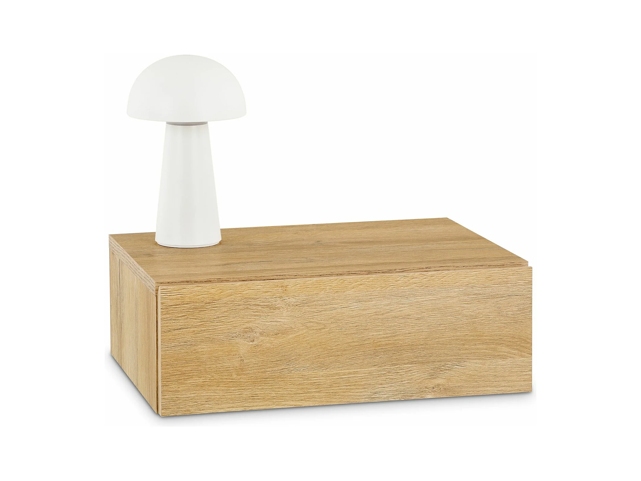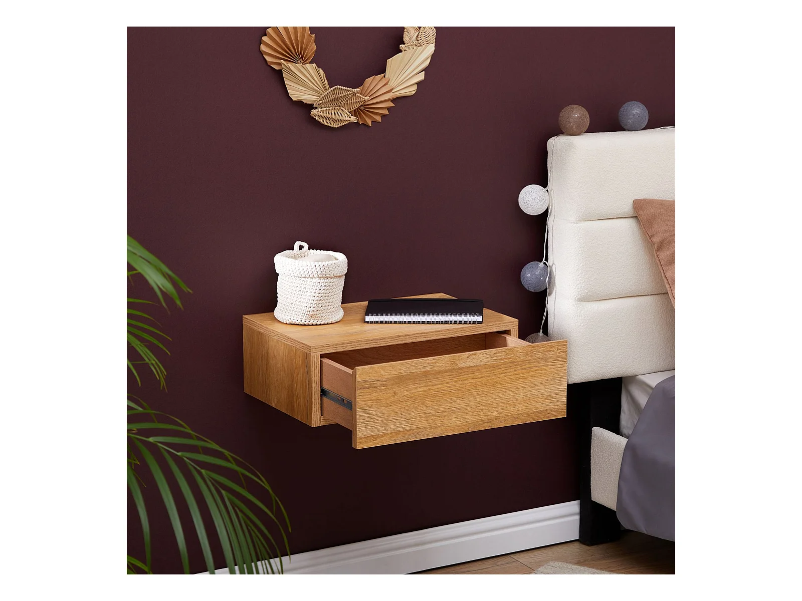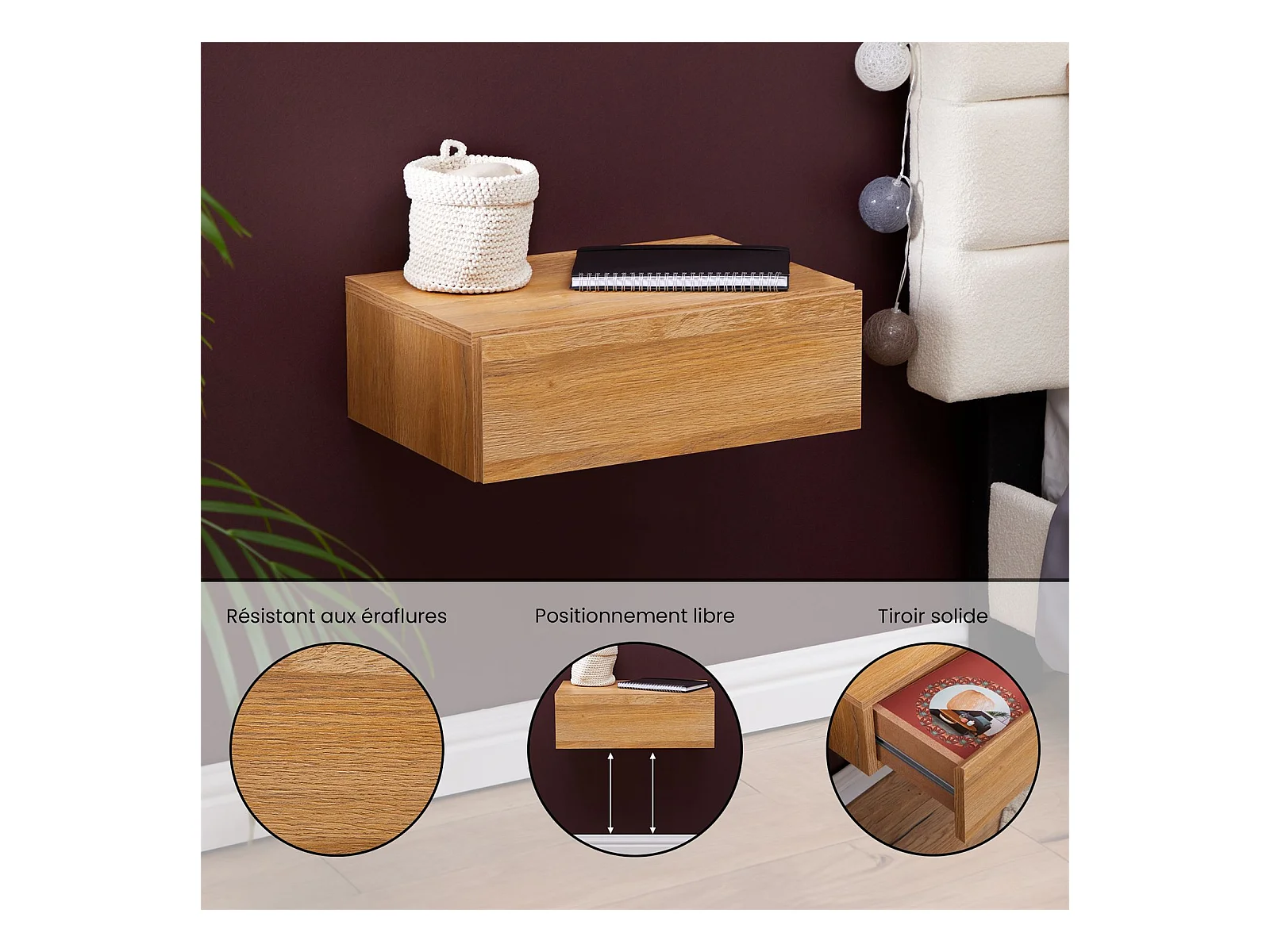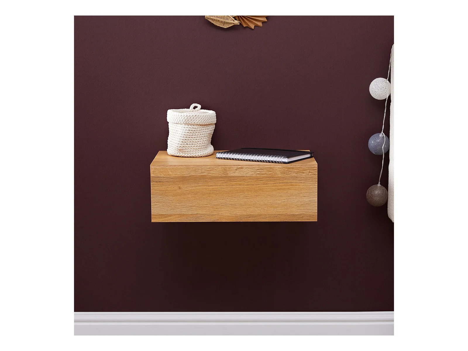Chevet suspendu OCEANE, étagère murale avec 1 tiroir sans poignée, en bois décor chêne sauvage