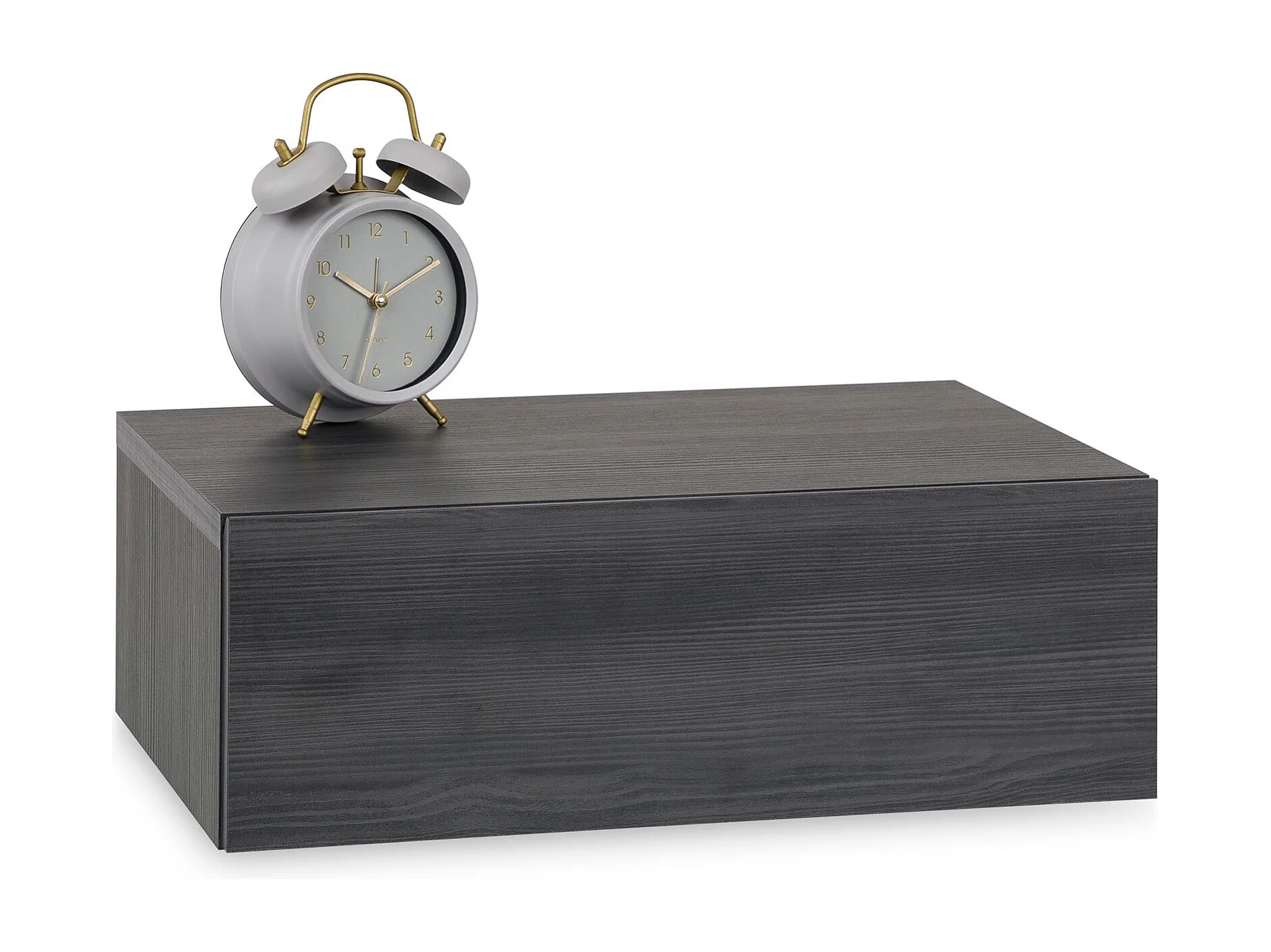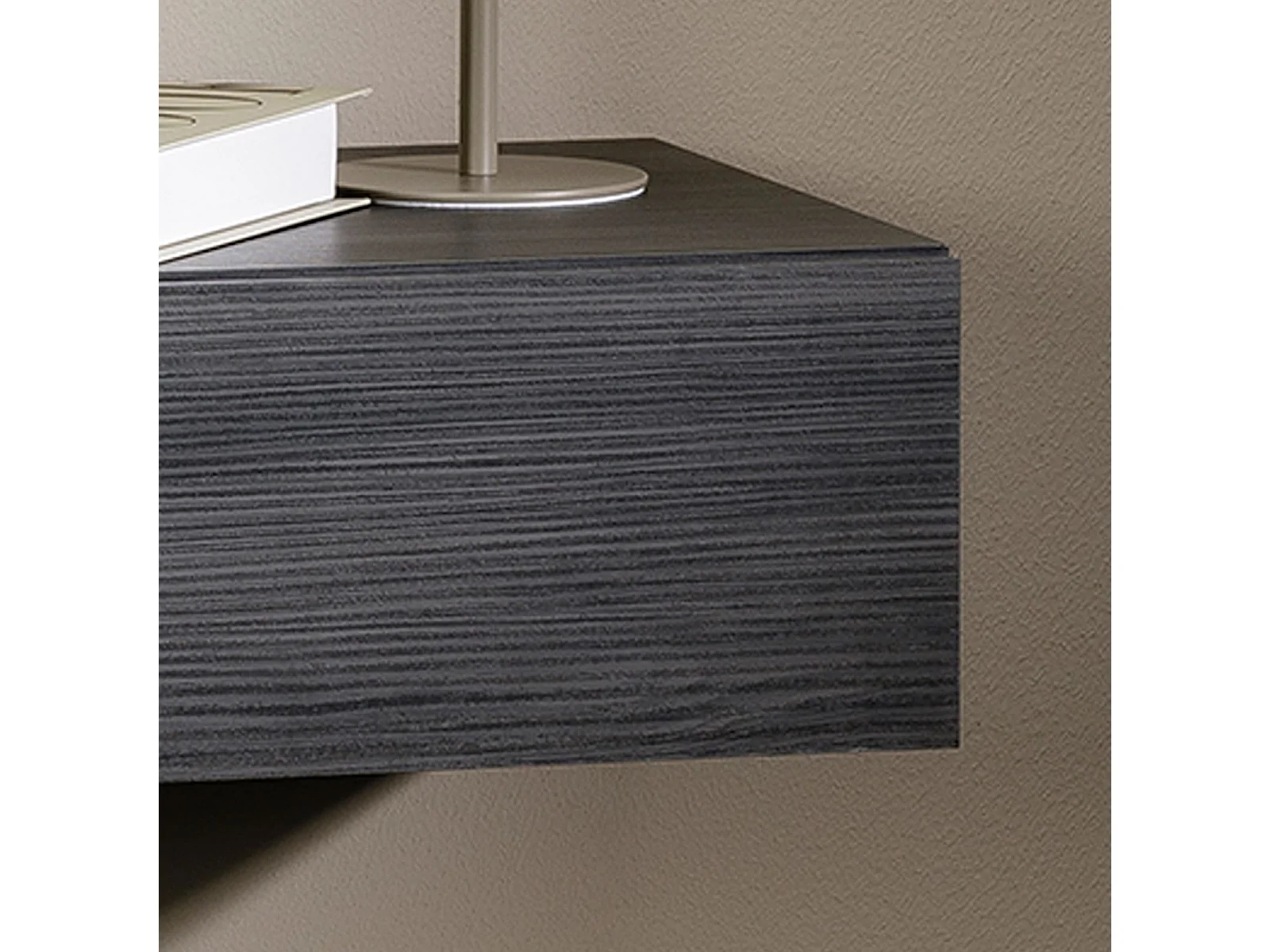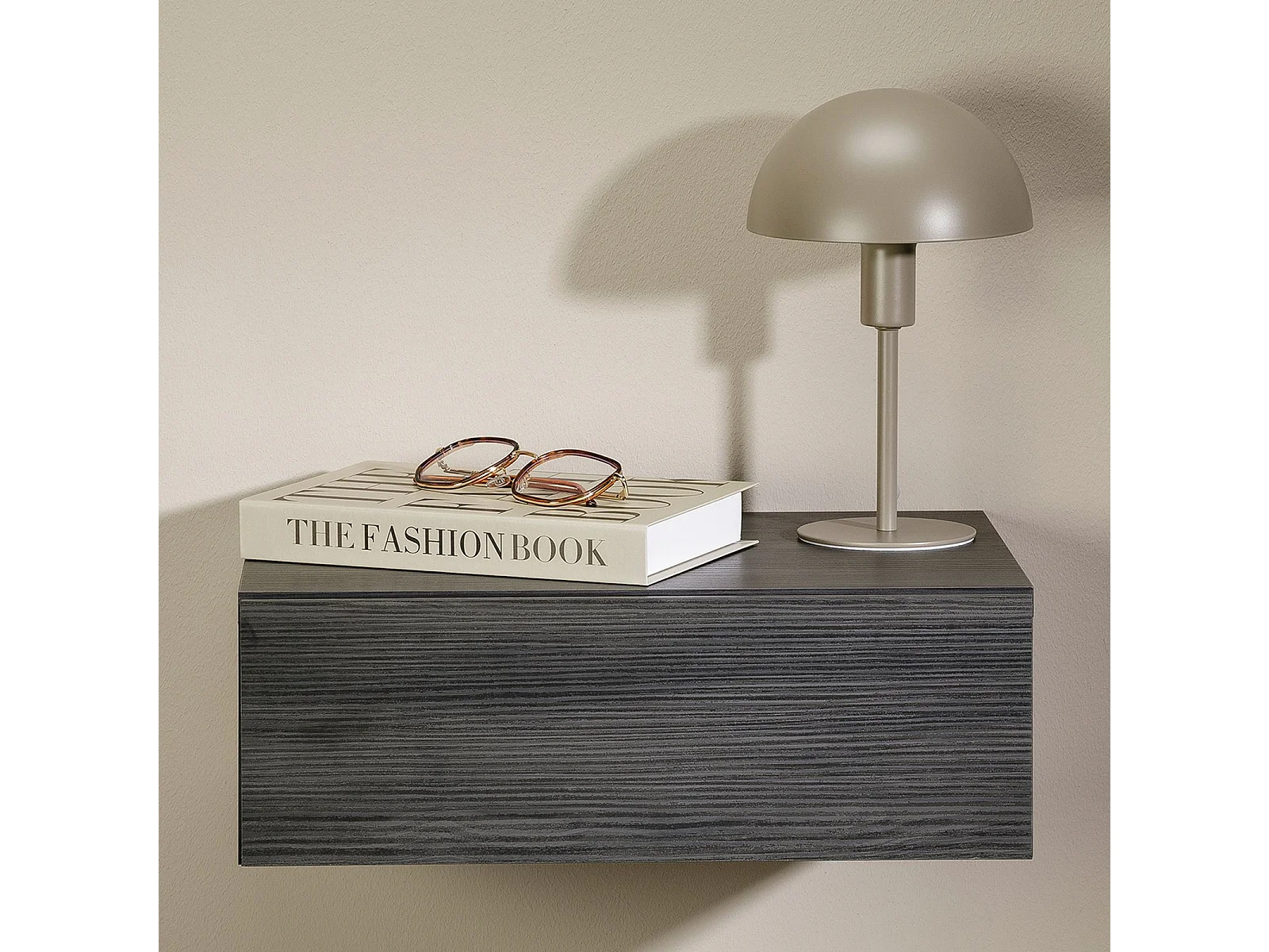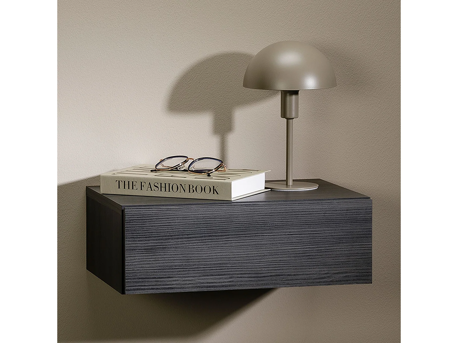 Chevet suspendu OCEANE, étagère murale avec 1 tiroir sans poignée, en bois décor gris cendré
