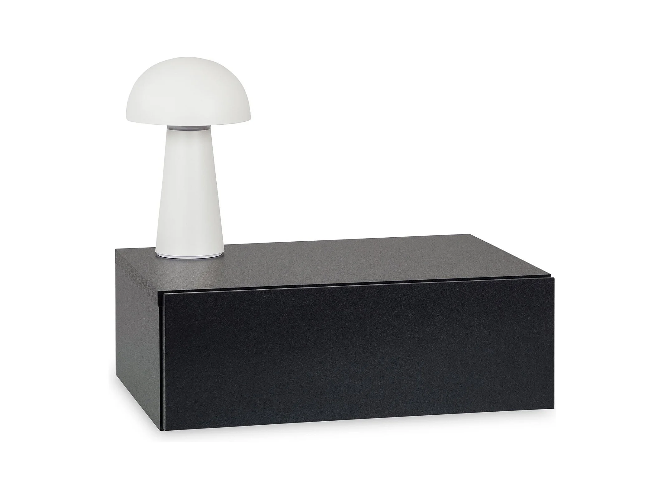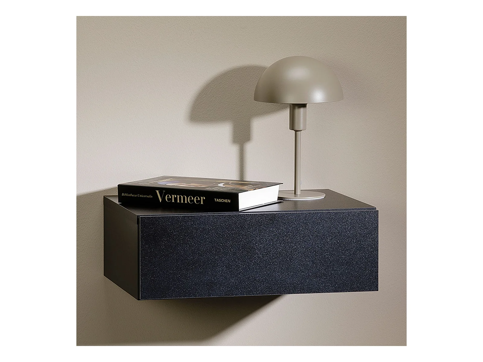 Chevet suspendu OCEANE, étagère murale avec 1 tiroir sans poignée, en bois noir mat