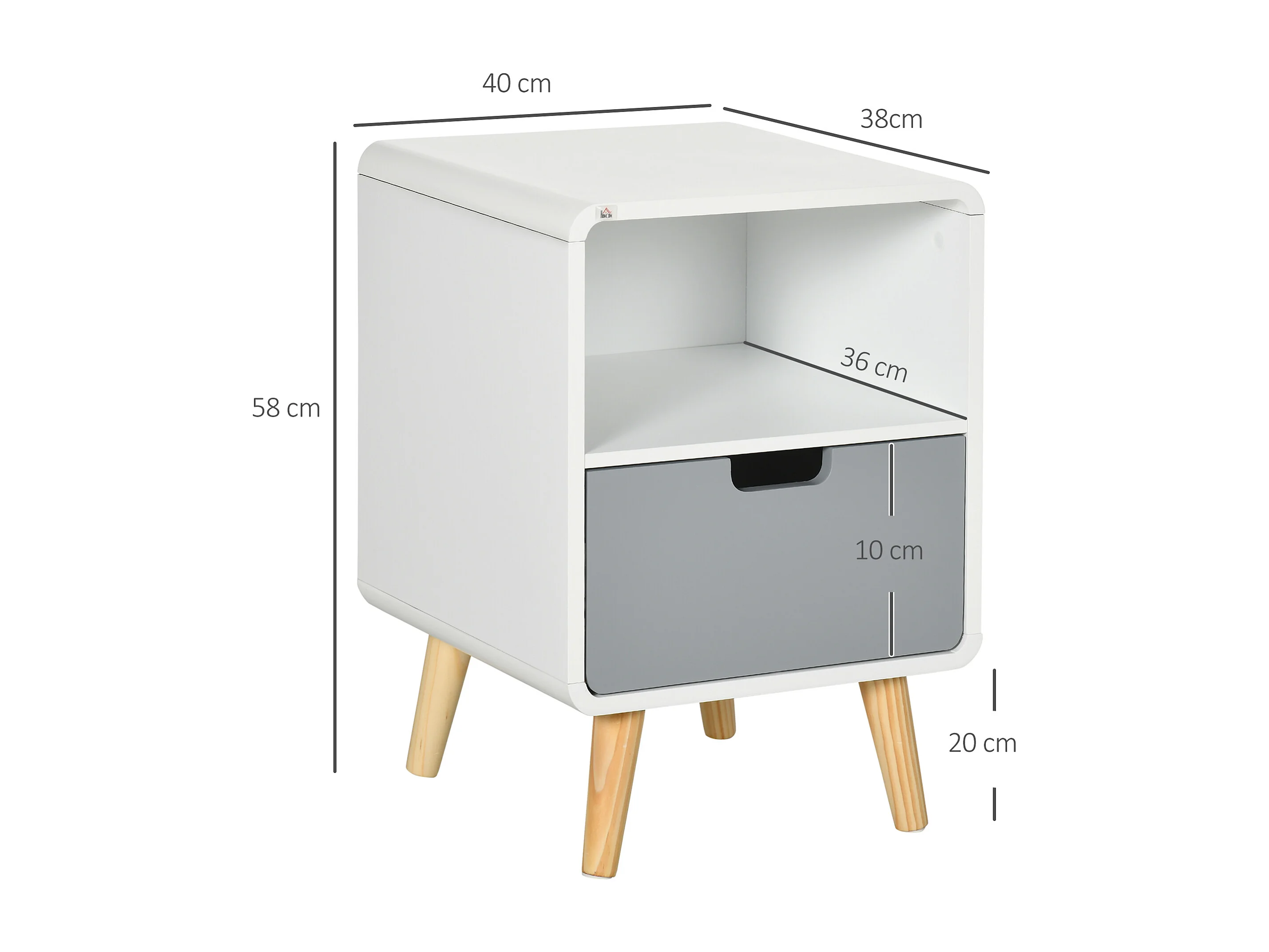 Chevet table de nuit design scandinave 40L x 38l x 58H cm tiroir + niche bois massif pin MDF blanc bleu gris