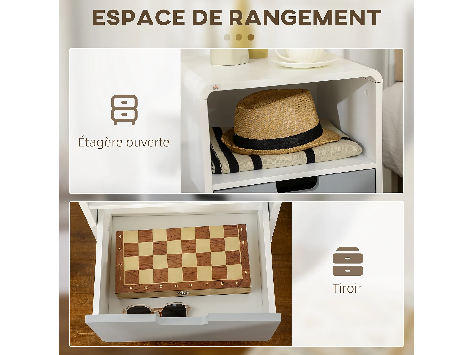 Chevet table de nuit multi-rangement 2 tiroirs niche étagère plateau panneaux particules blanc