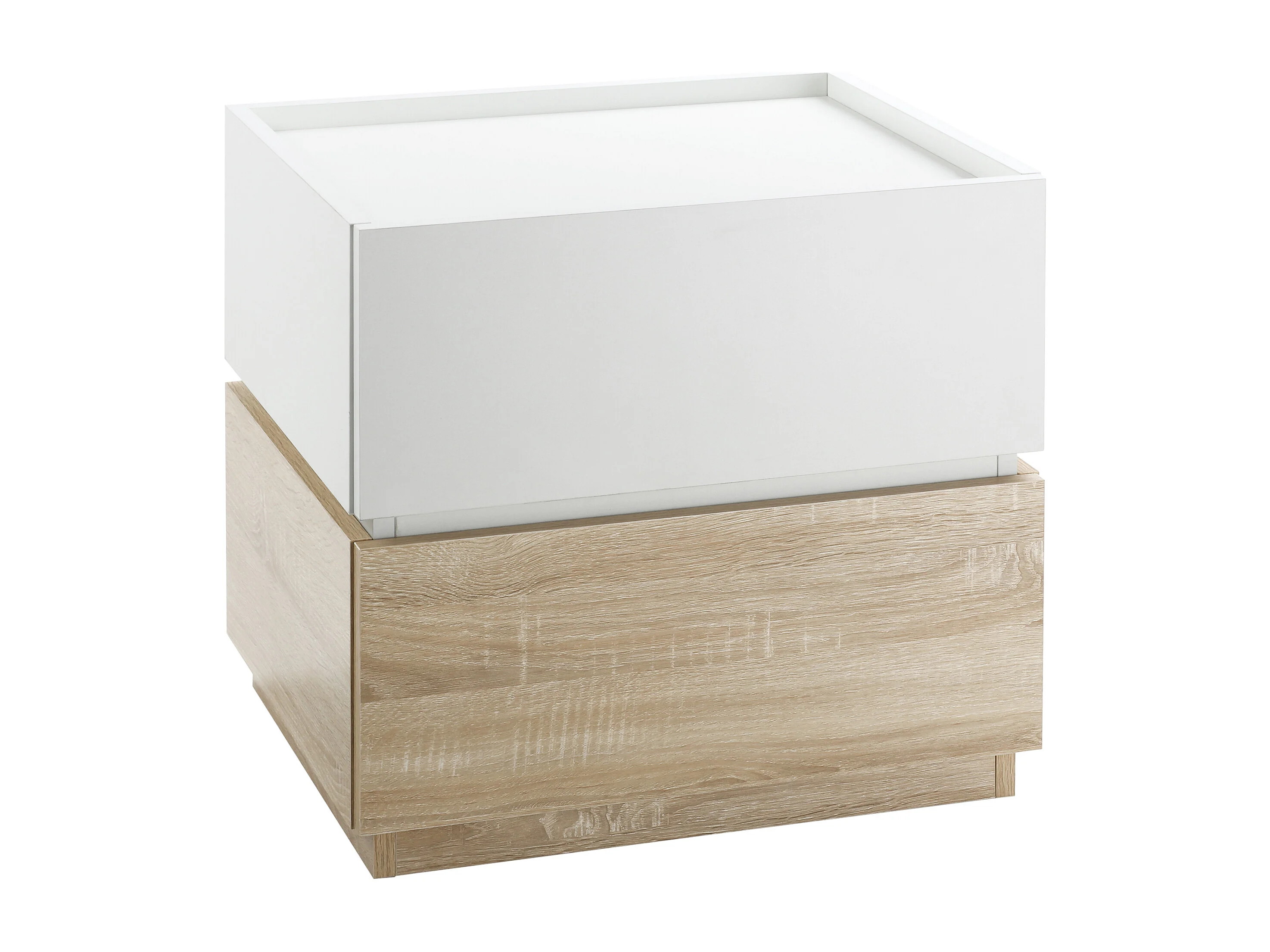 Chevet table de nuit modulable empilable - 2 tiroirs - dim. 50L x 40l x 47,5H cm - blanc aspect chêne clair