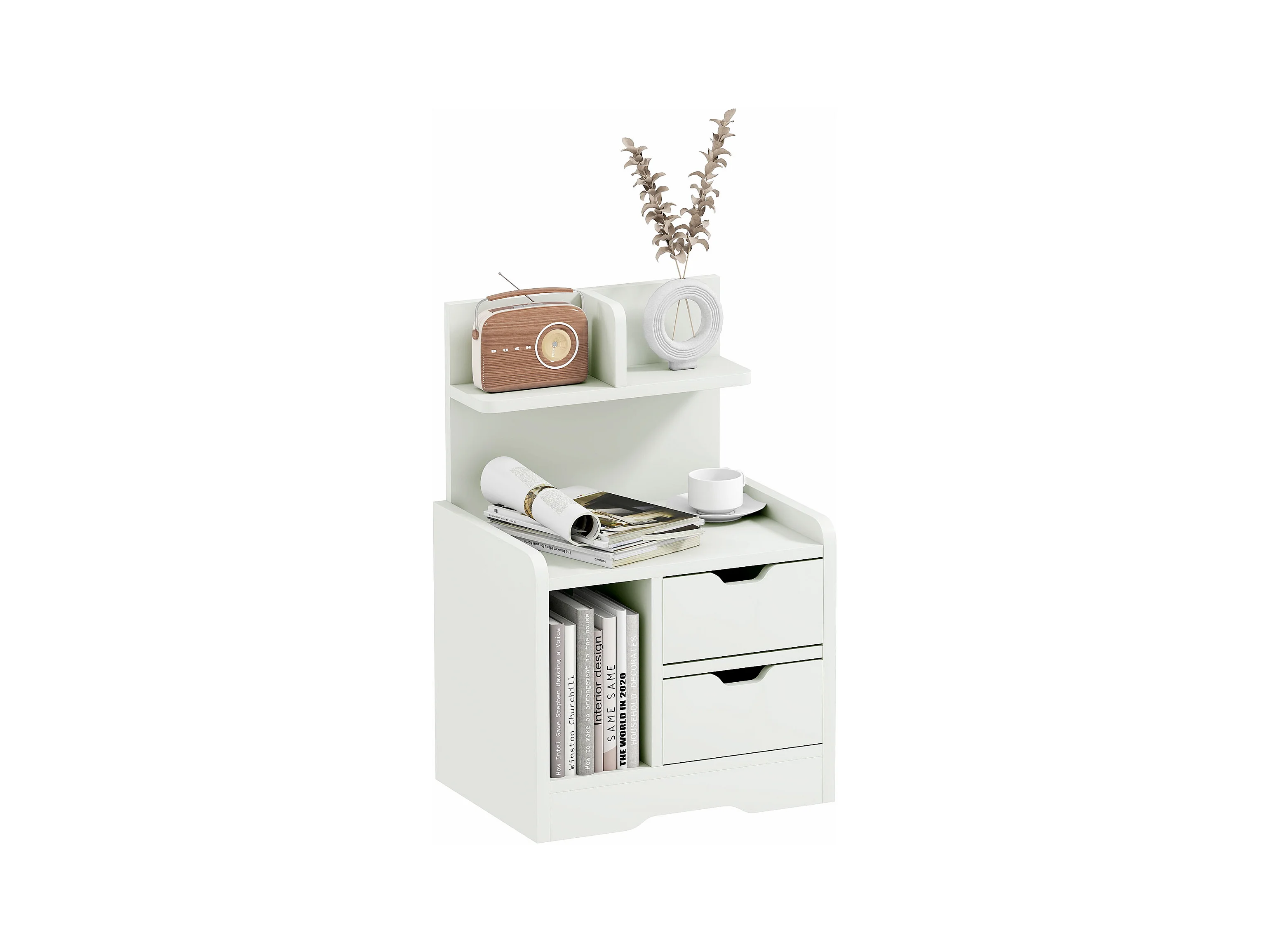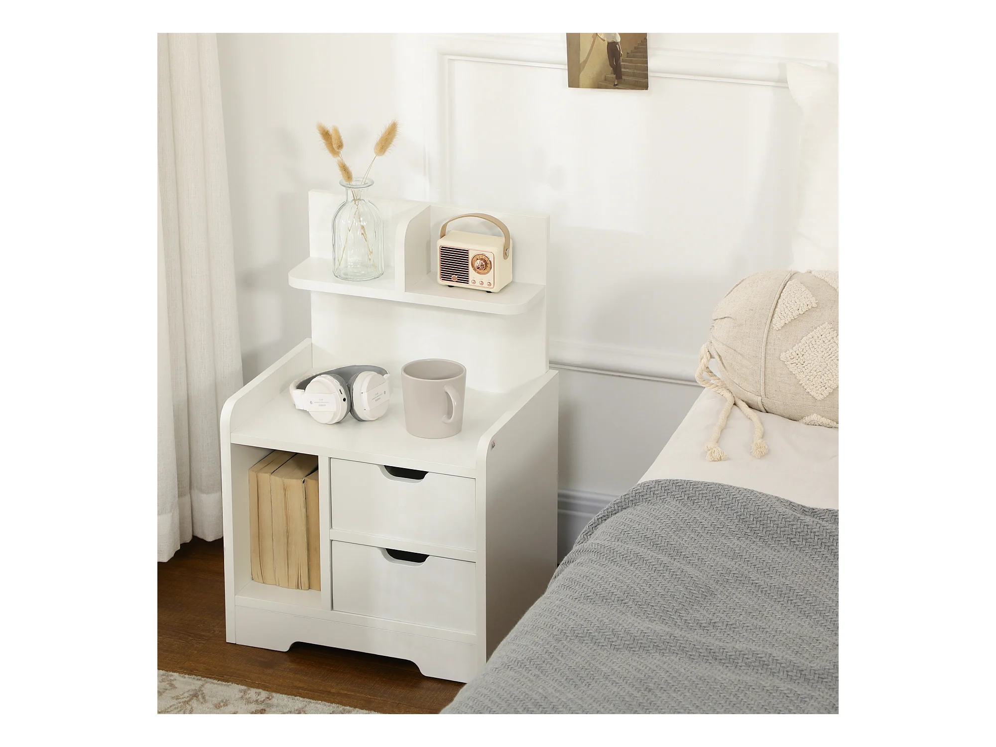 Chevet table de nuit multi-rangement 2 tiroirs niche étagère plateau panneaux particules blanc