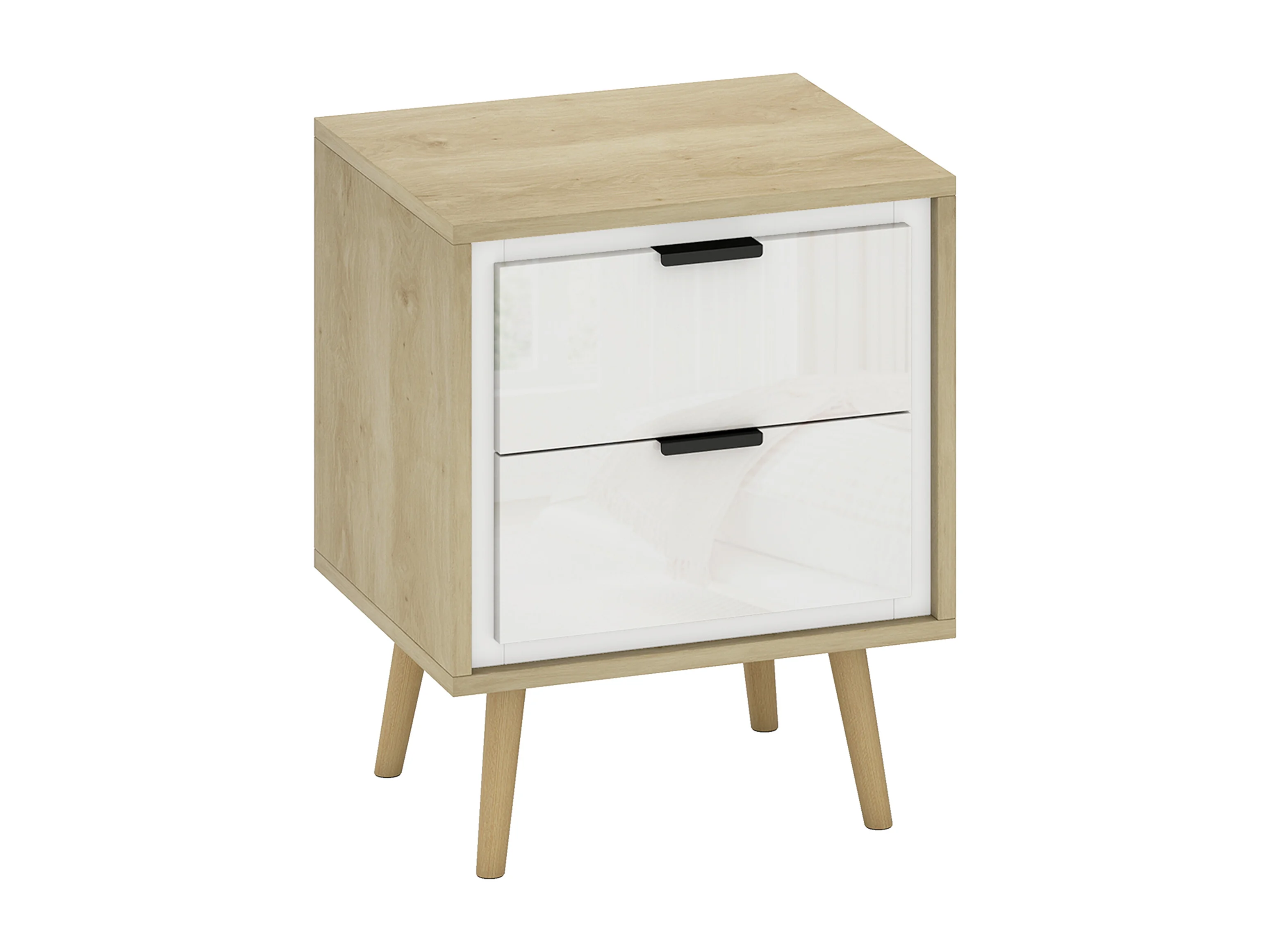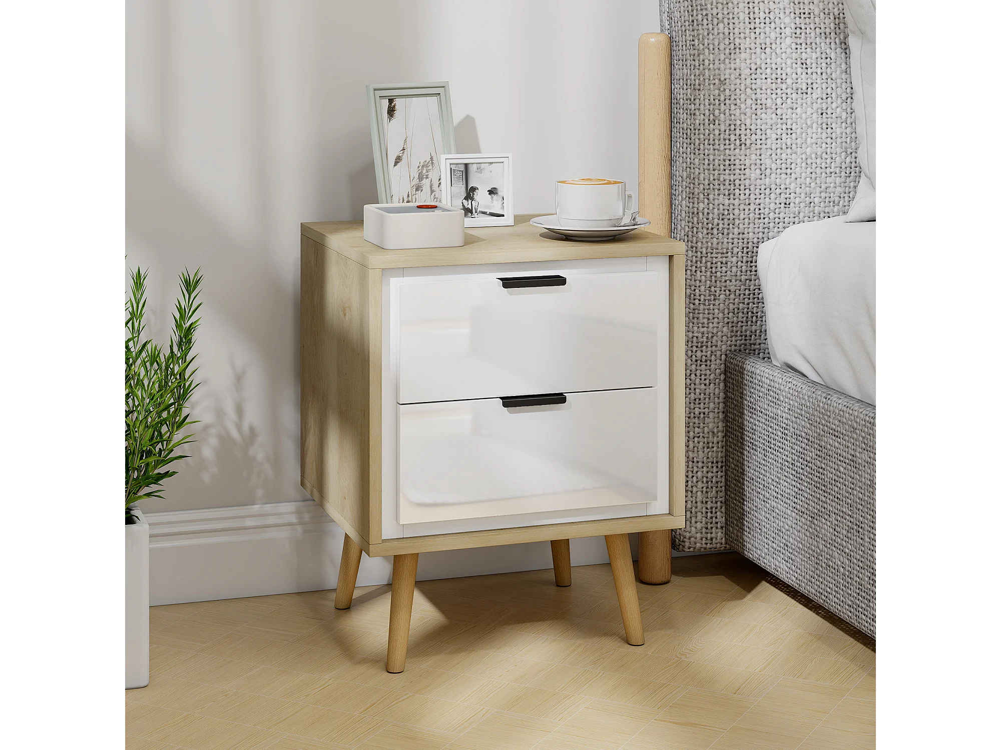 Chevet table de nuit style scandinave 2 tiroirs façade blanc laqué effet bois clair