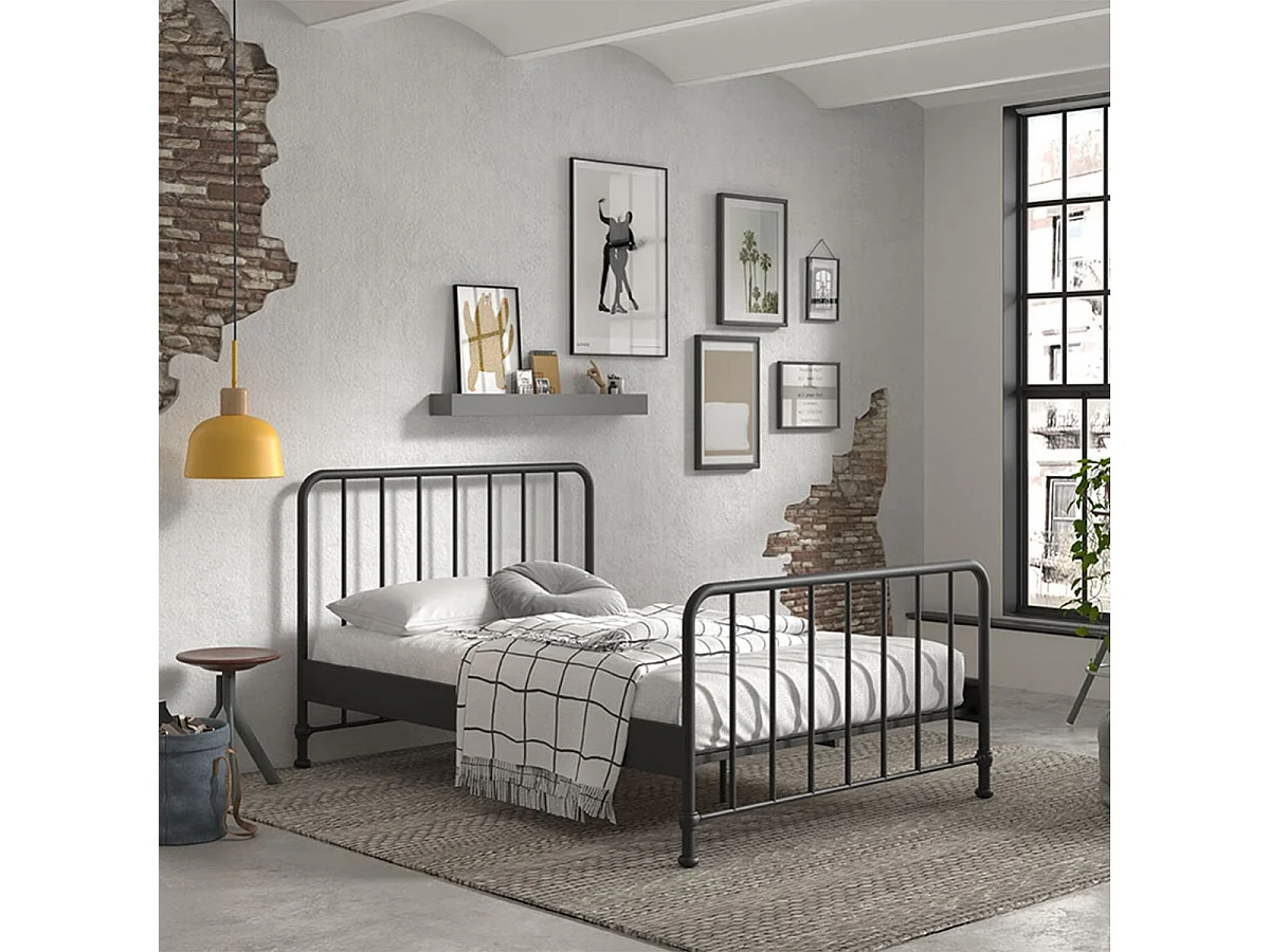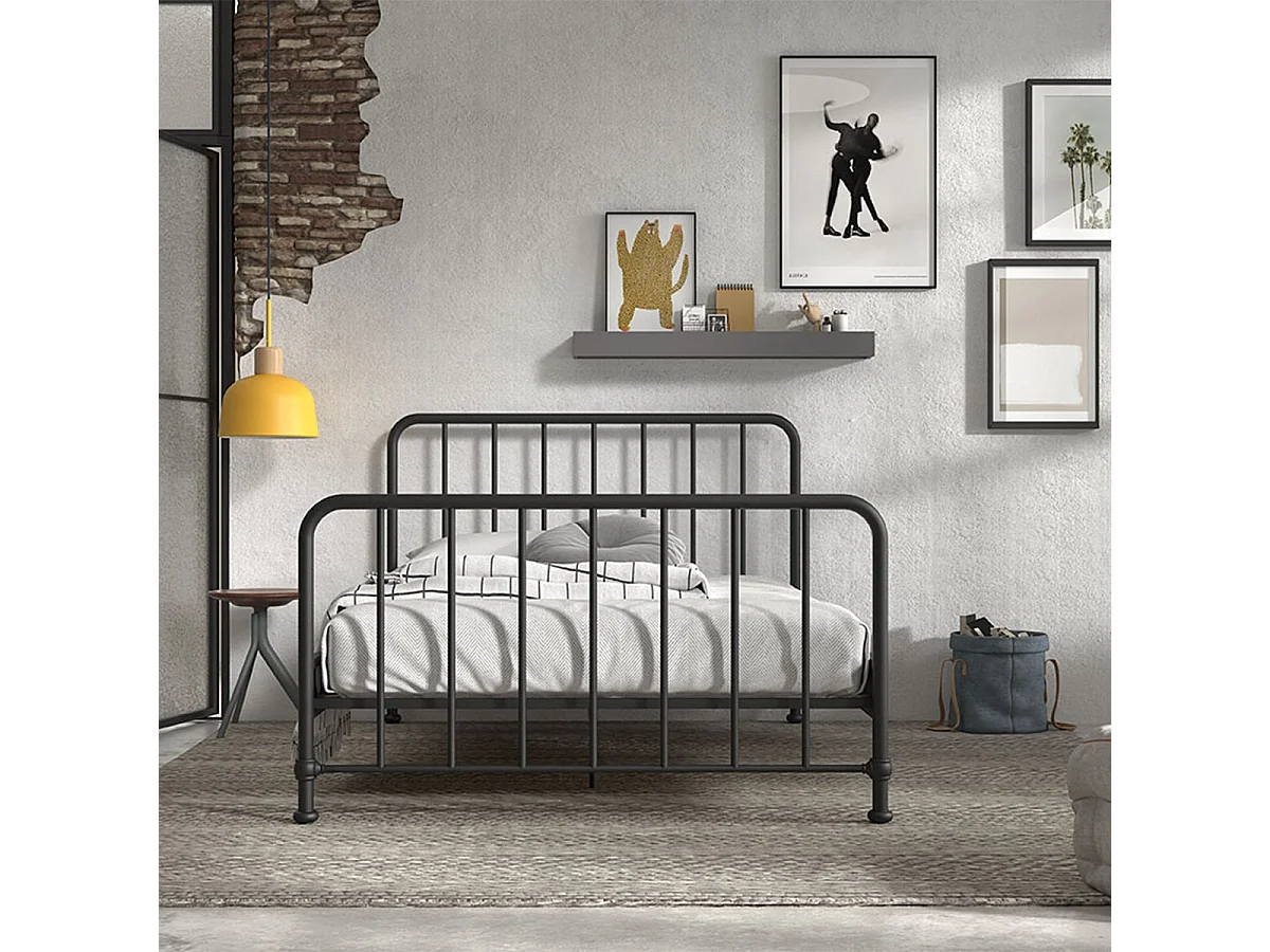 CHICAGO - Lit à Barreaux 140x200cm Métal Poudré Noir