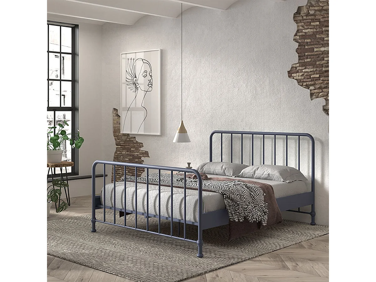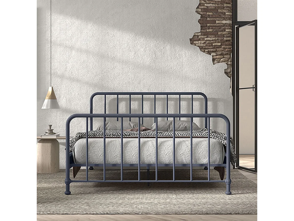 CHICAGO - Lit à Barreaux 160x200cm Métal Poudré Bleu
