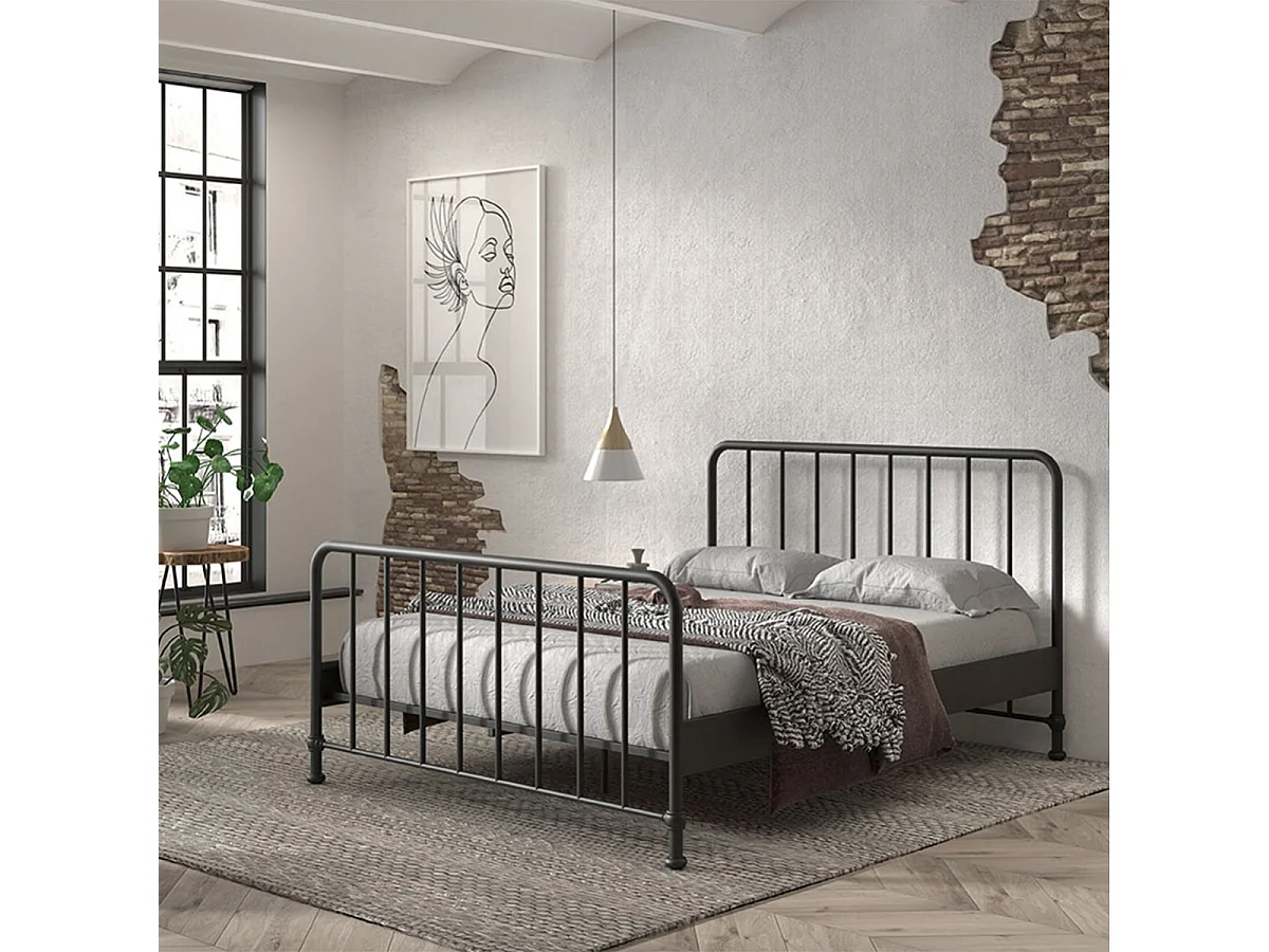 CHICAGO - Lit à Barreaux 160x200cm Métal Poudré Noir