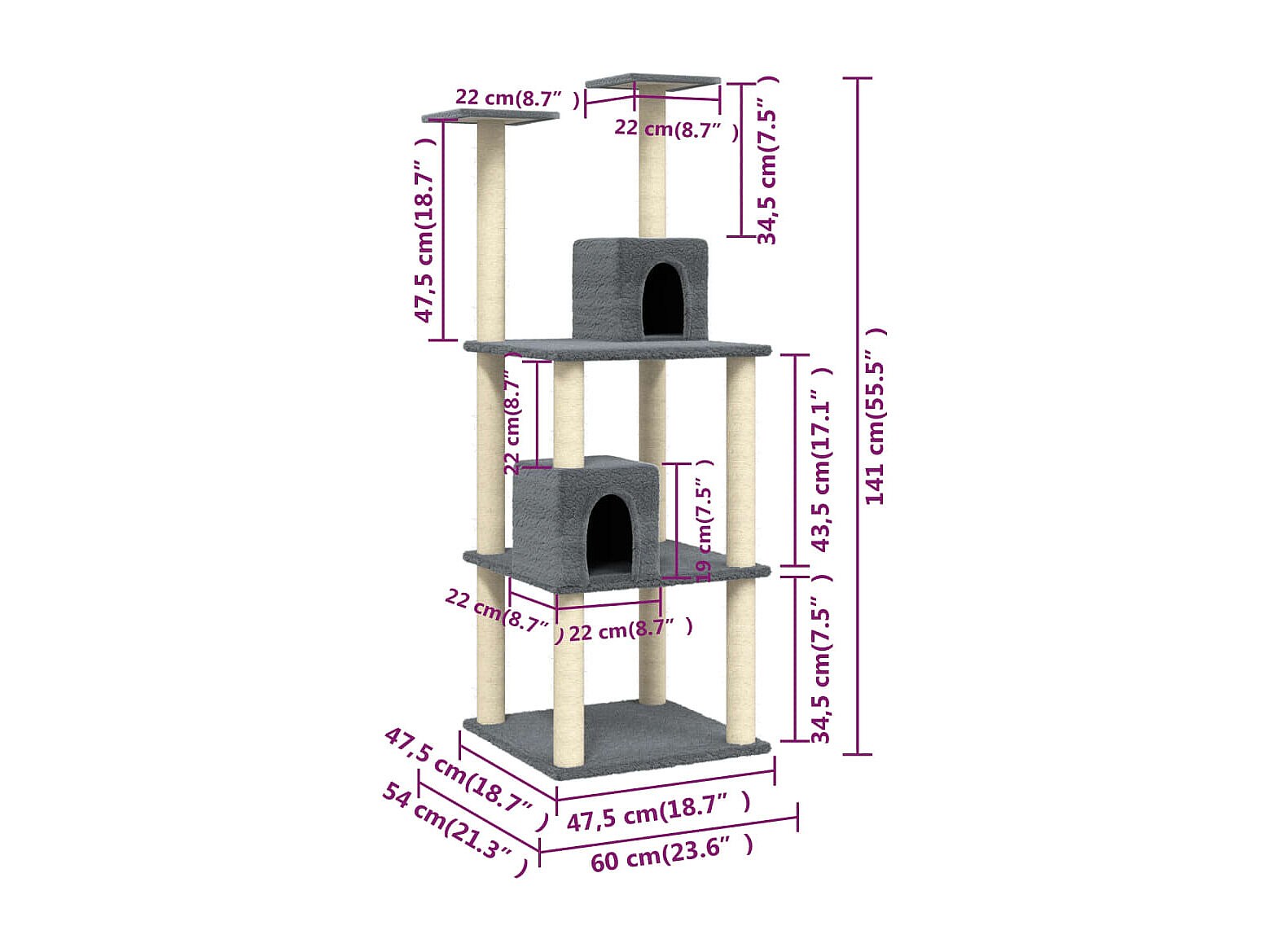 Chiefland Arbre à chat avec griffoirs en sisal Gris foncé 141 cm