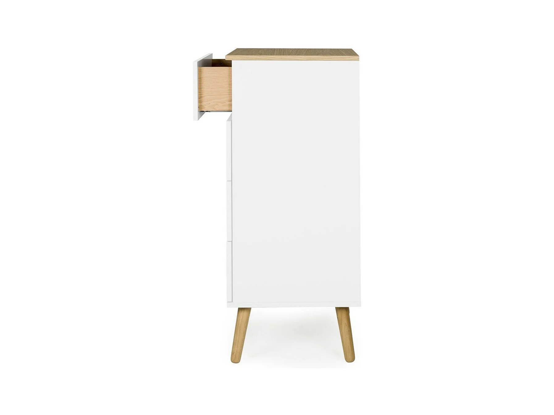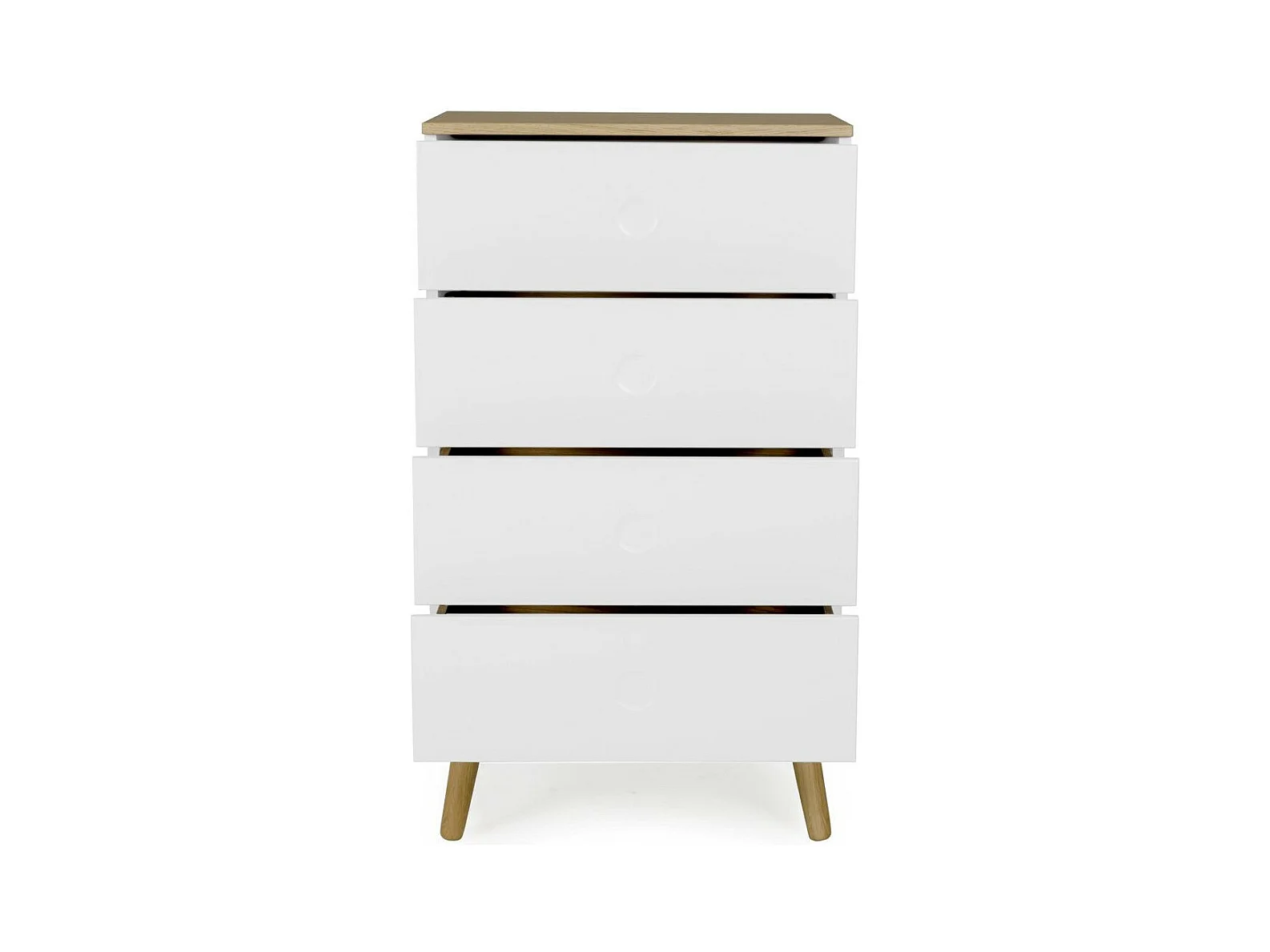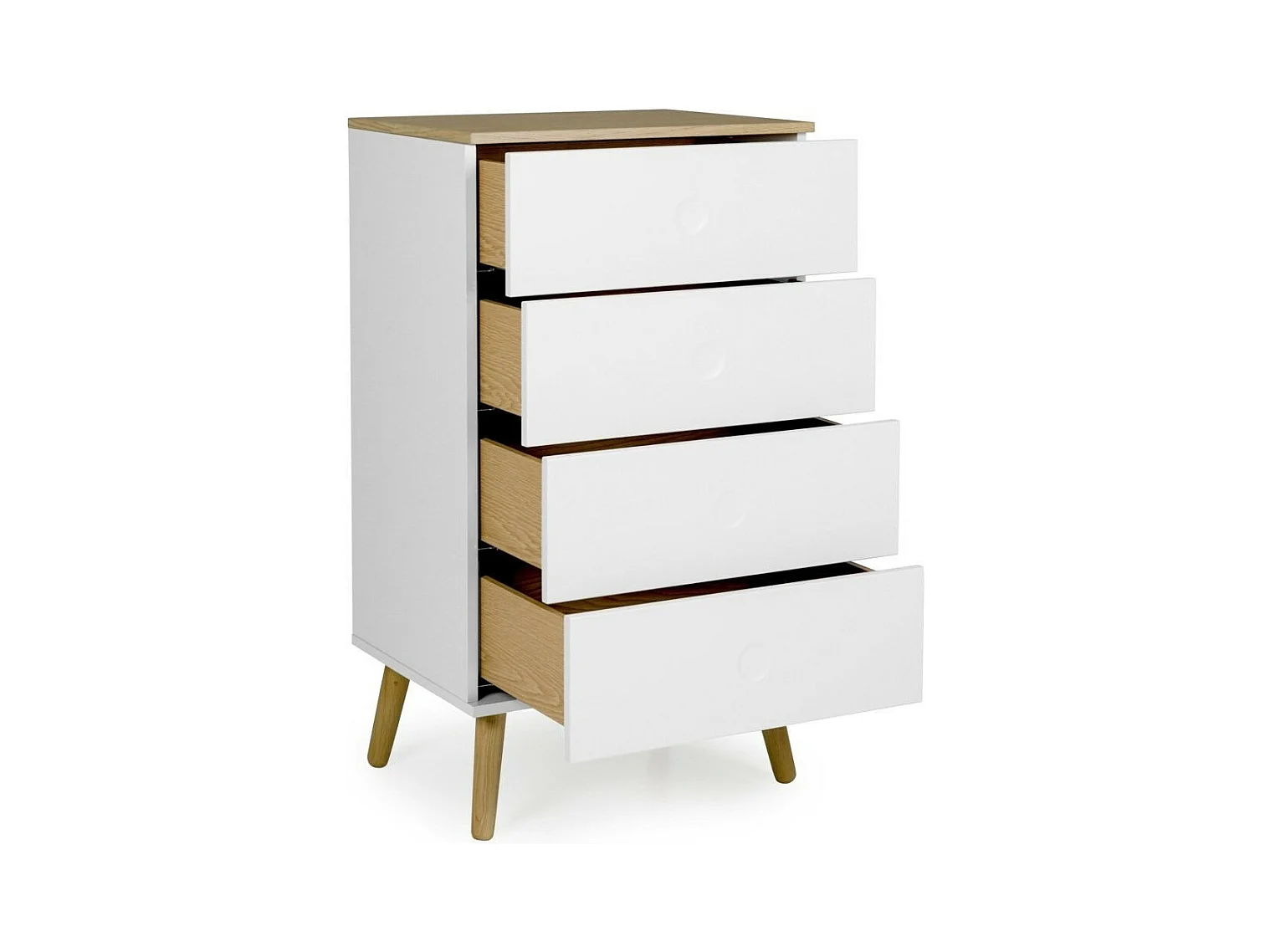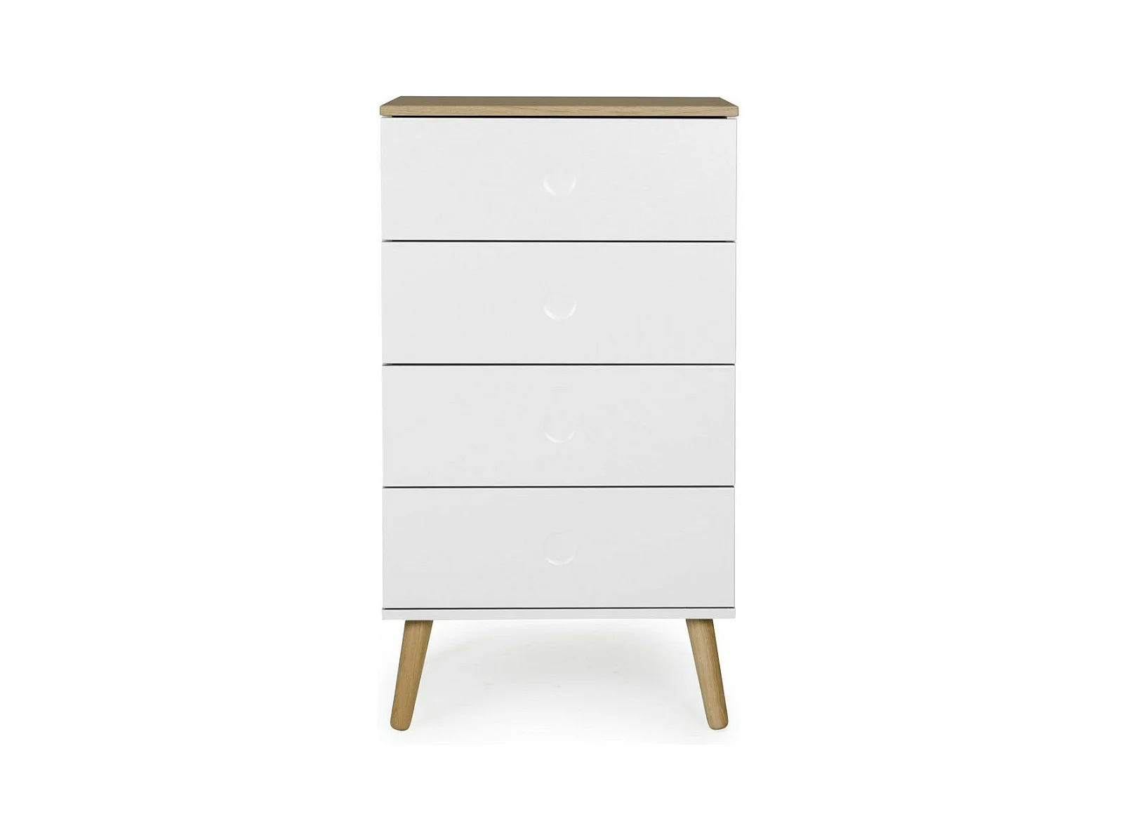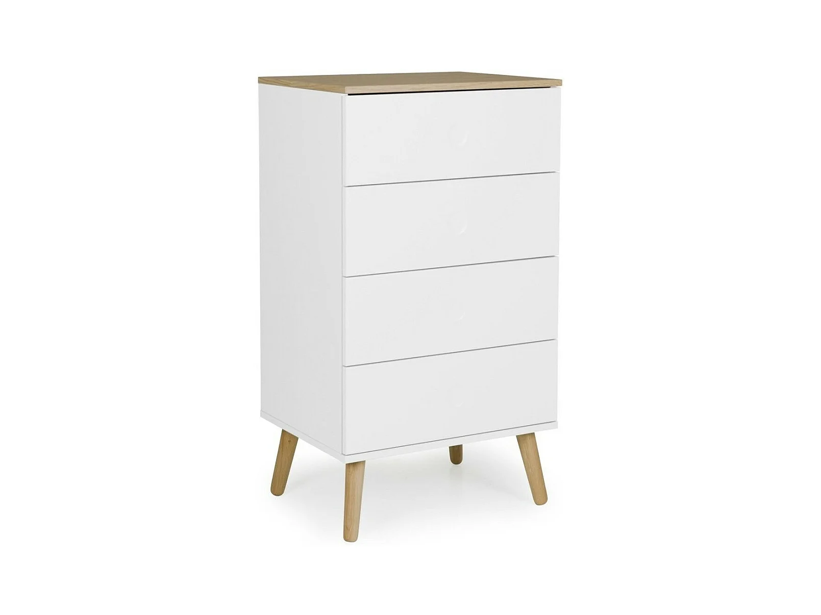 Chiffonnier 4 tiroirs laqué blanc et pieds chêne massif clair Pecas
