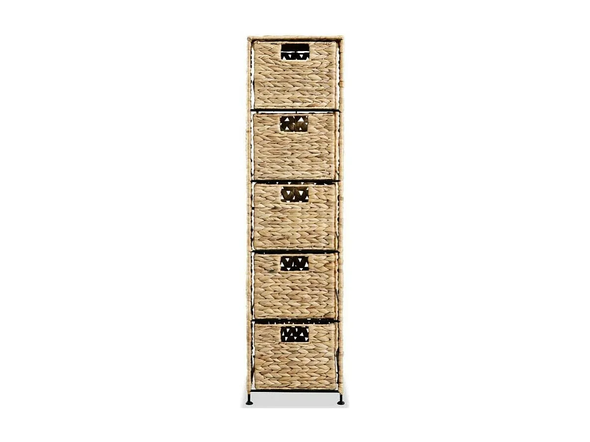 Chiffonnier 5 tiroirs métal et jacinthe marron Kyca