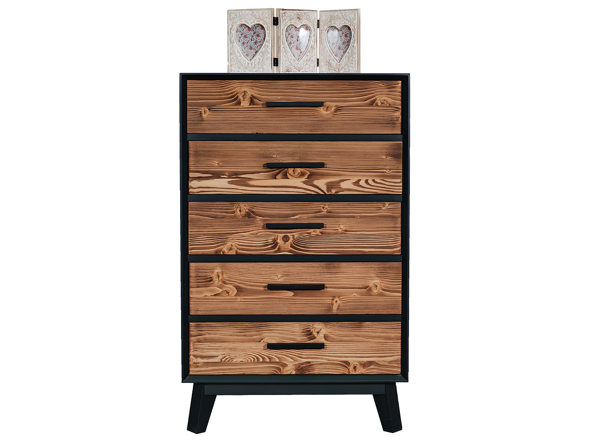 Chiffonnier 5 tiroirs Nostalgie - Noir et bois