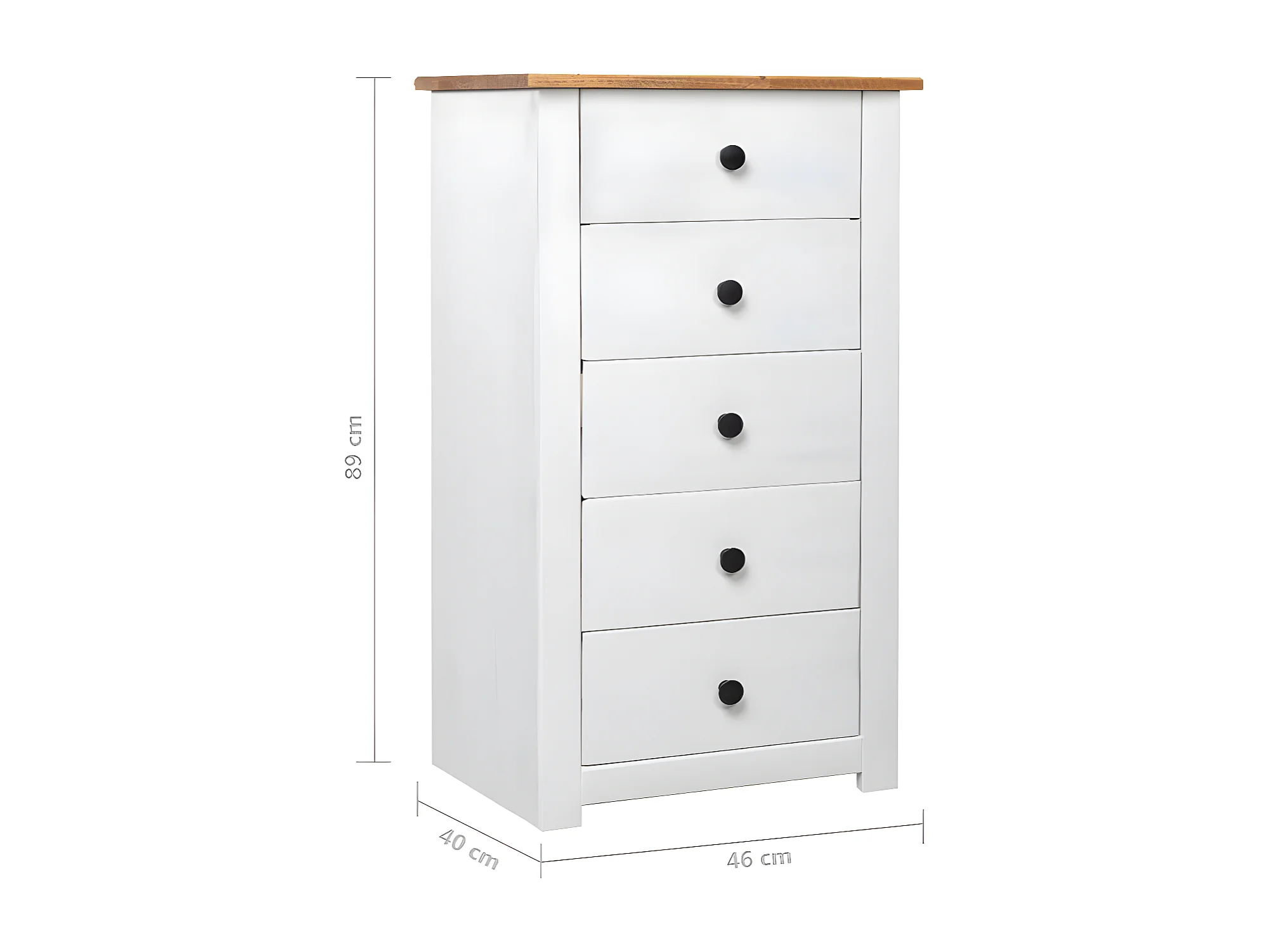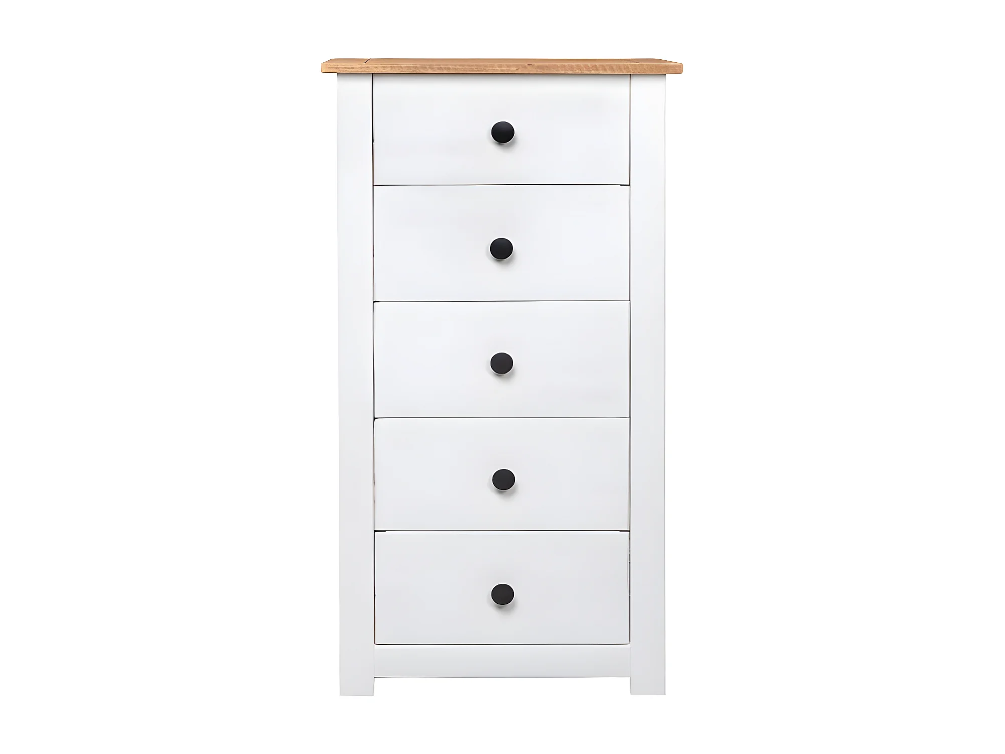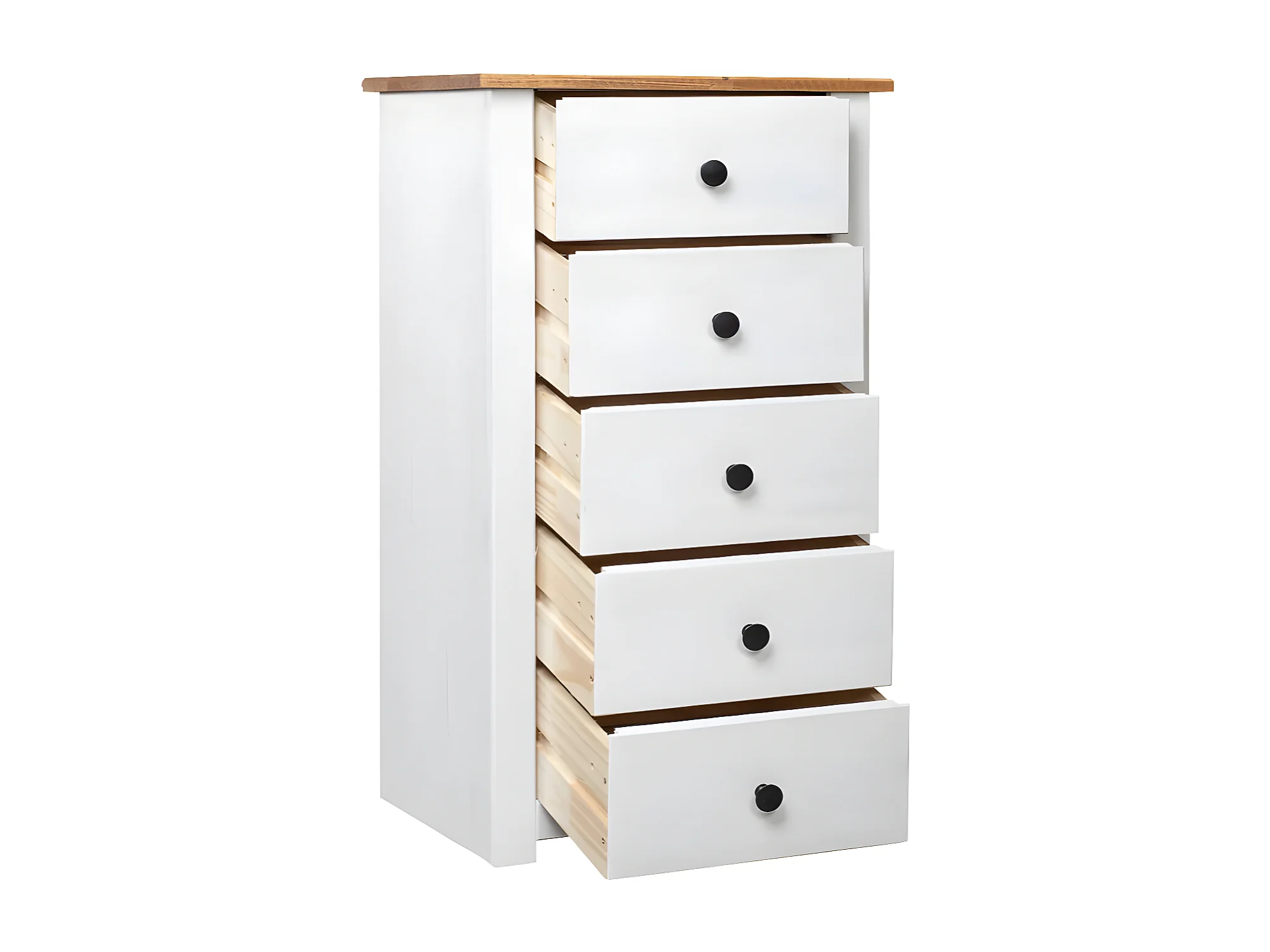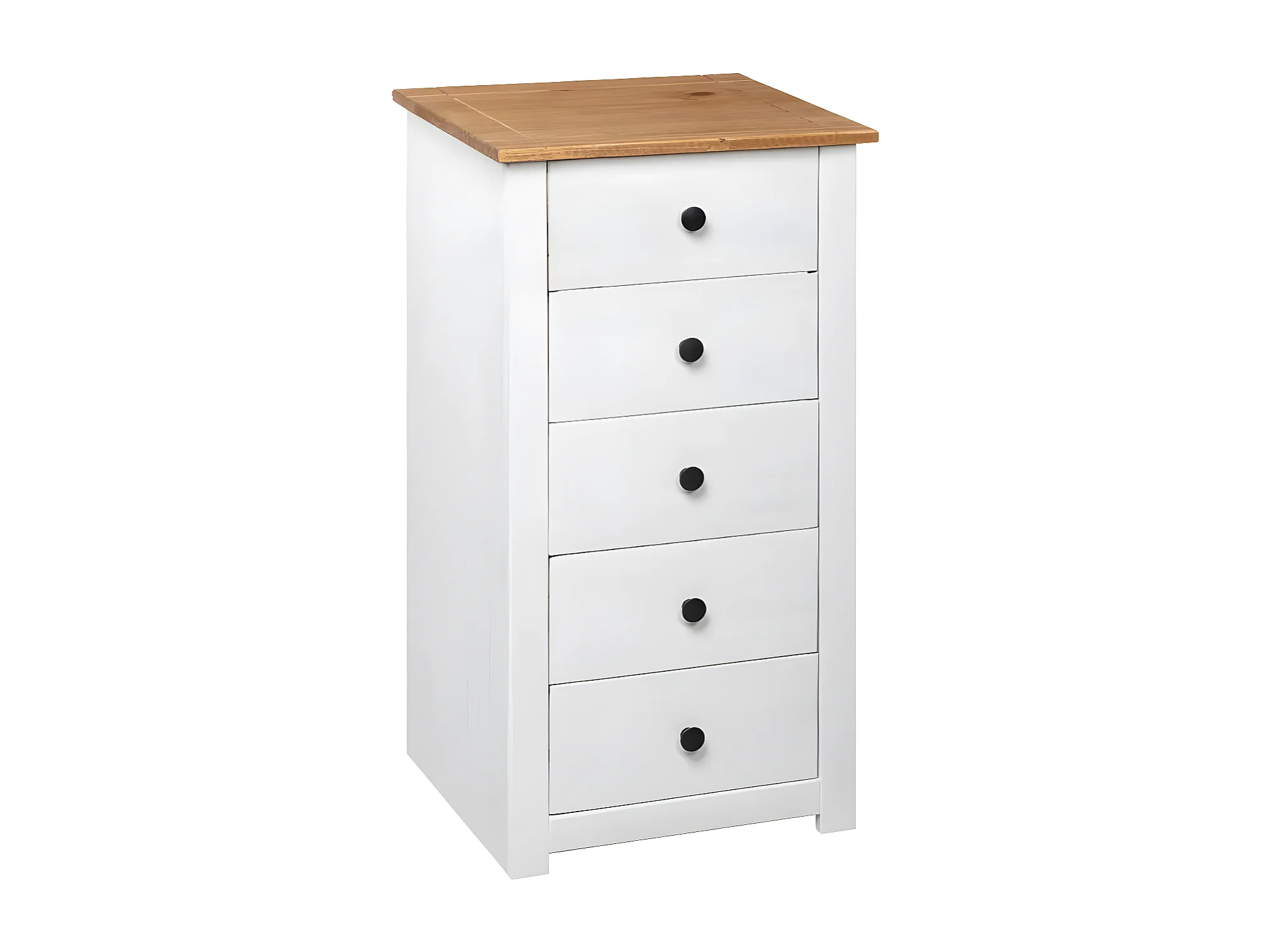 Chiffonnier 5 tiroirs pin massif blanc et clair Iris 46cm