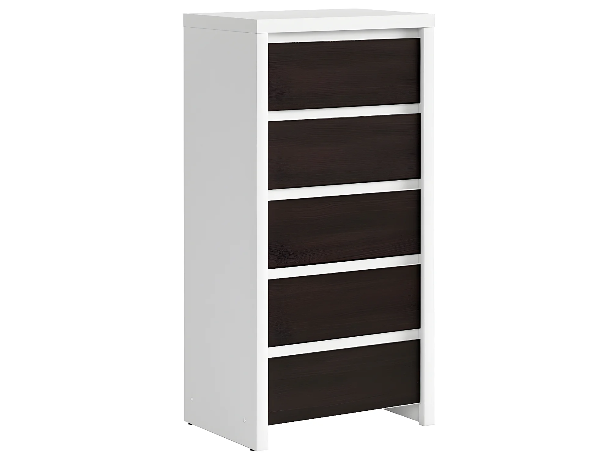 Chiffonnier 5 tiroirs Soren Blanc et Bois Wengé
