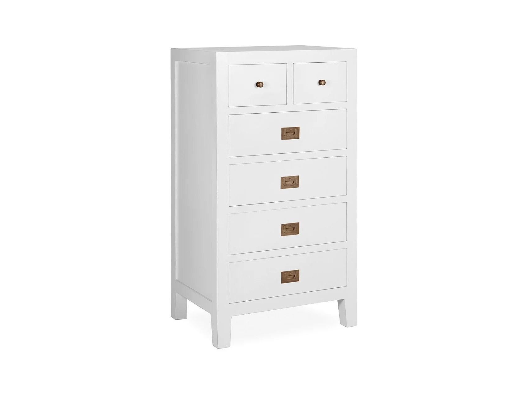 Chiffonnier 6 tiroirs bois massif de mindi blanc Kourame 60cm
