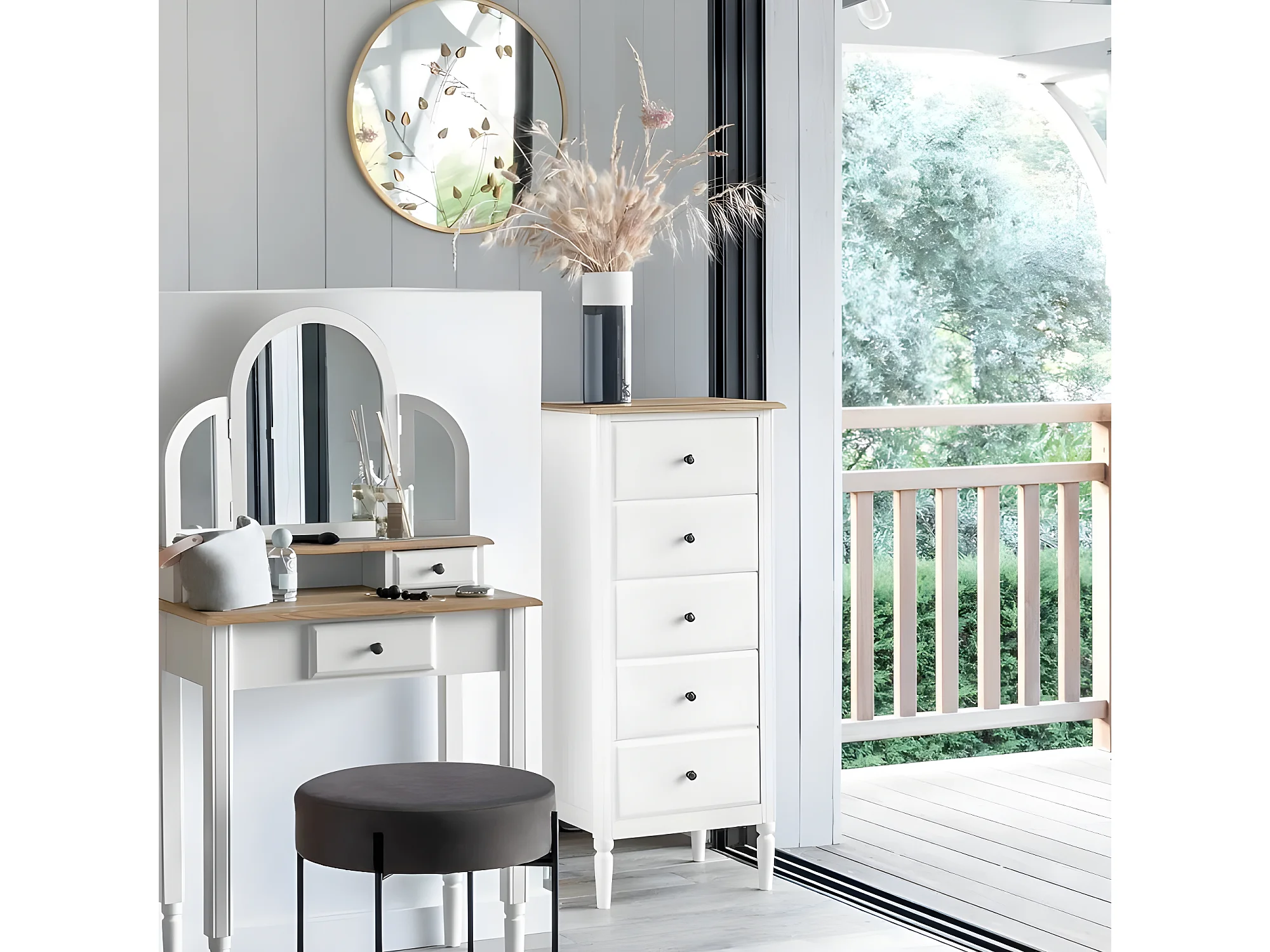 Chiffonnier 5 Tiroirs en Bois "Solen" 108cm Blanc