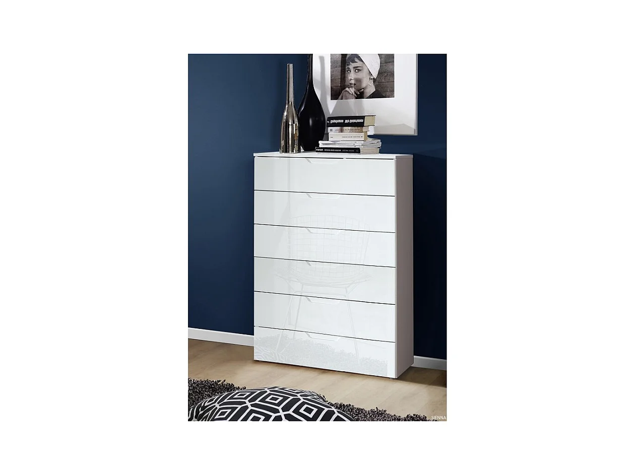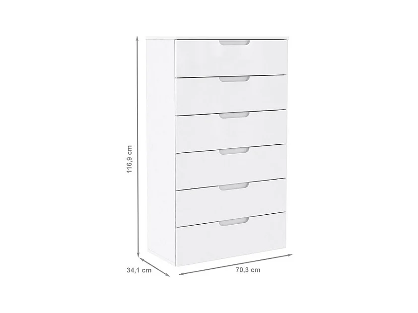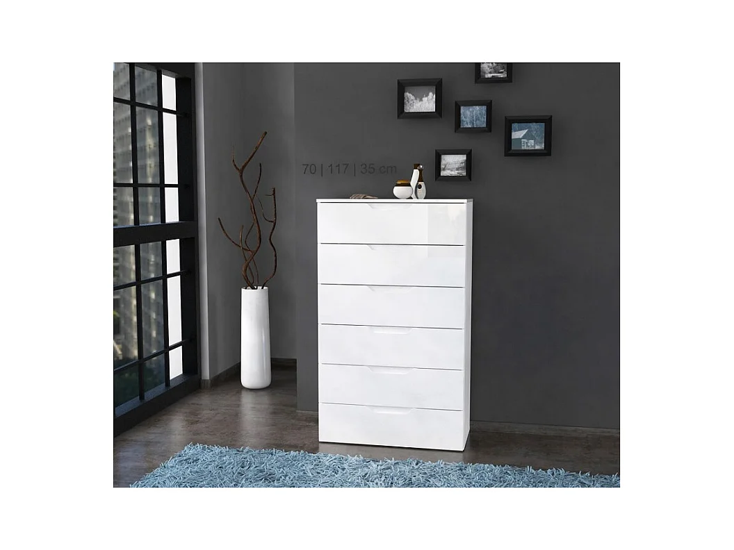 Chiffonnier H. 117 cm 6 tiroirs blanc laqué et mat - PURE