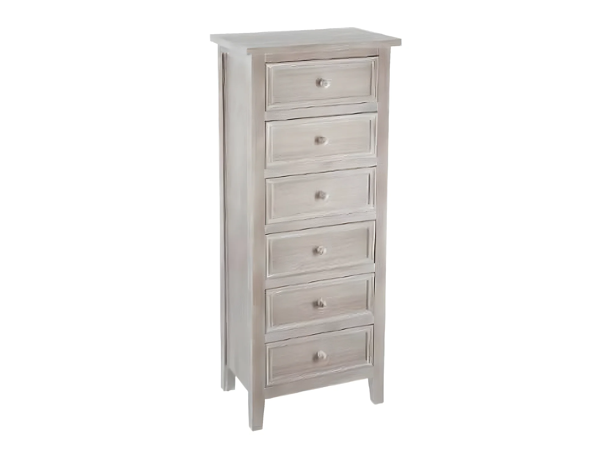 Chiffonnier de 6 tiroirs en bois blanchi - Dim : L45 x l30 x H113 cm