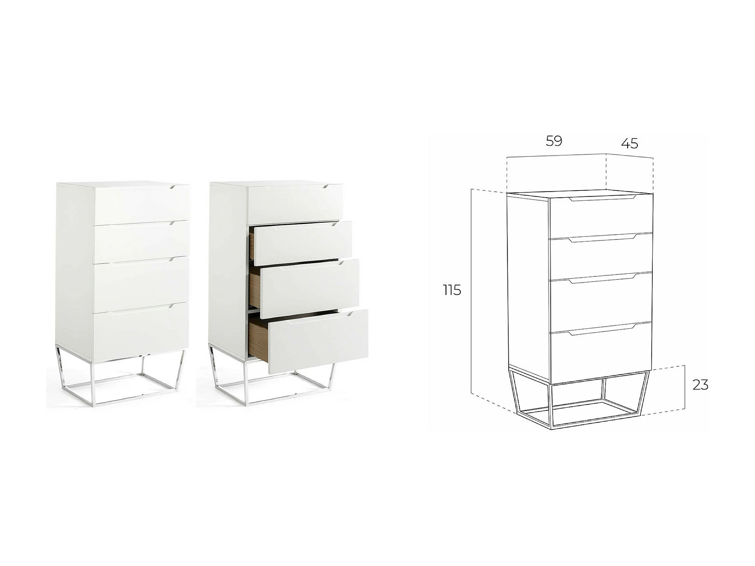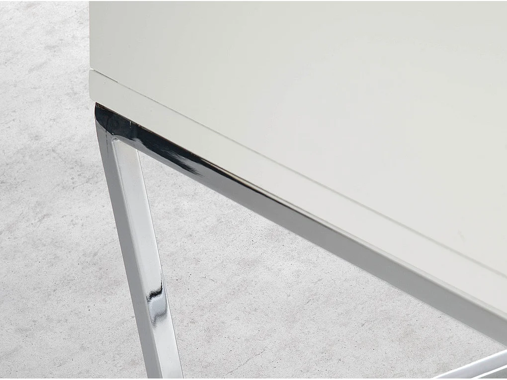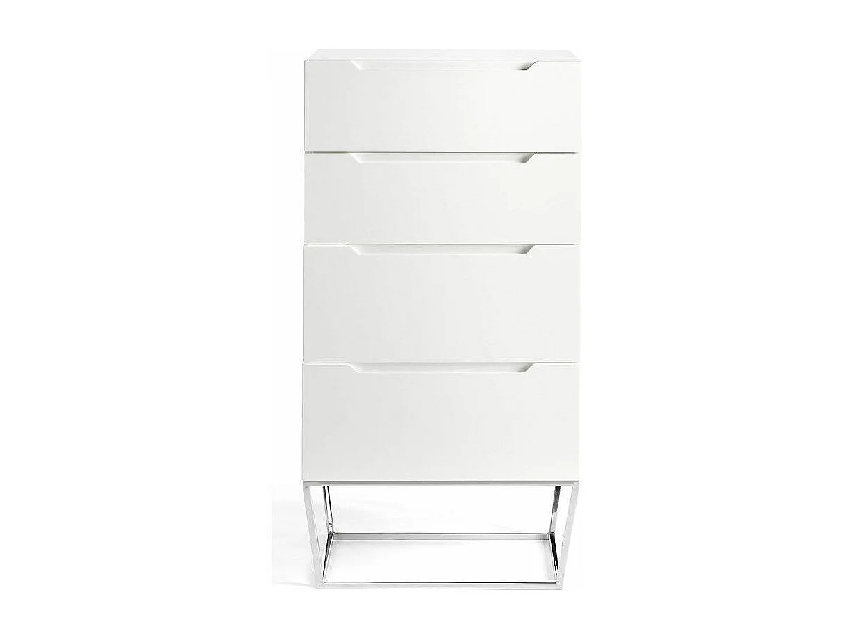 Chiffonnier design 4 tiroirs laqué et pieds acier chromé Romus-Couleur Pearl
