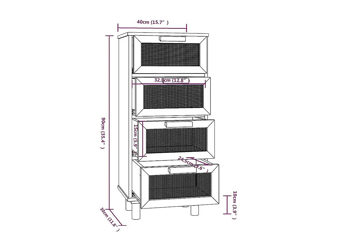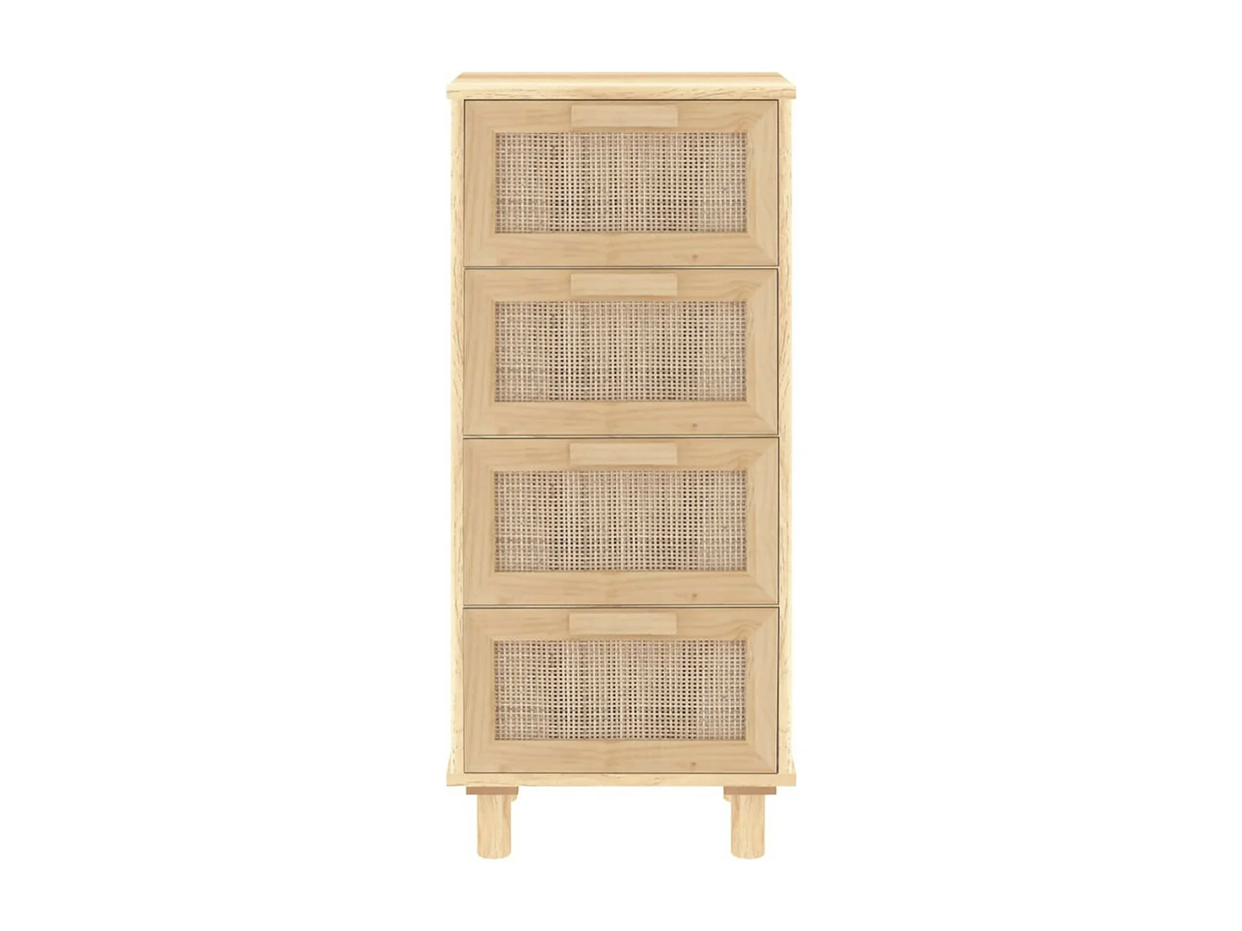 Chiffonnier en bois avec 4 tiroirs en Rotin naturel 40cm - Modèle Kaliga-Couleur Blanc