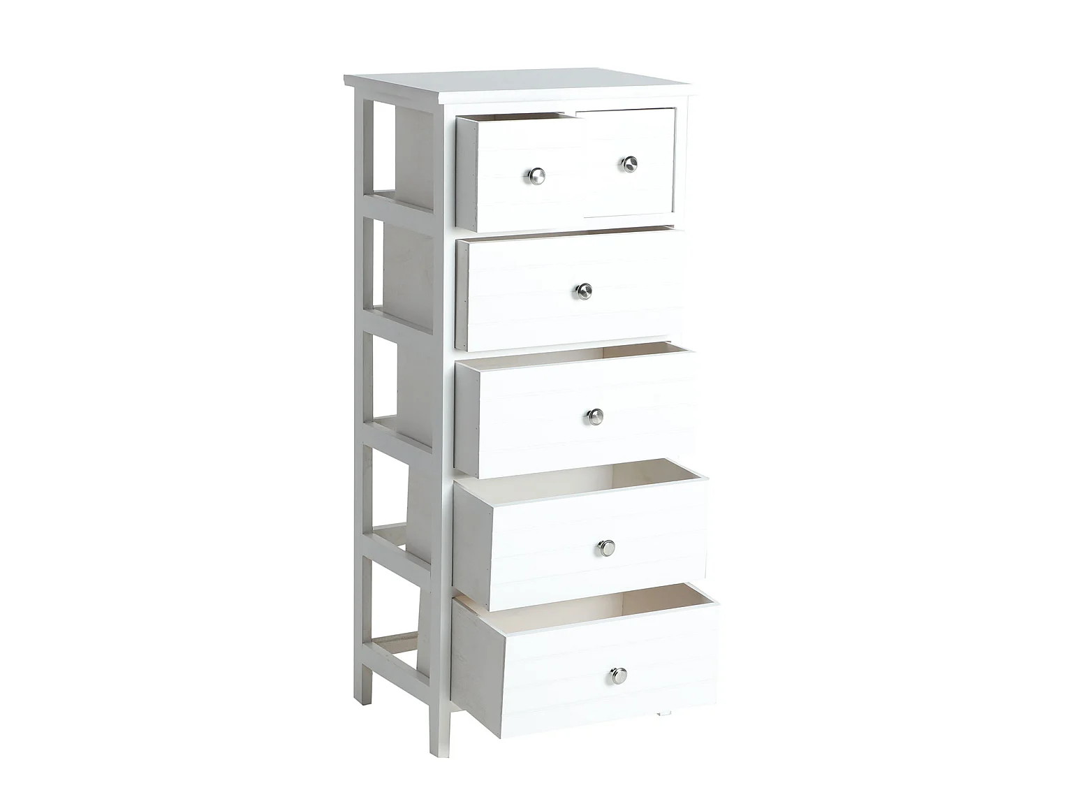 Chiffonier en Bois de Pin, de couleur Blanc, 40x29x90 cm