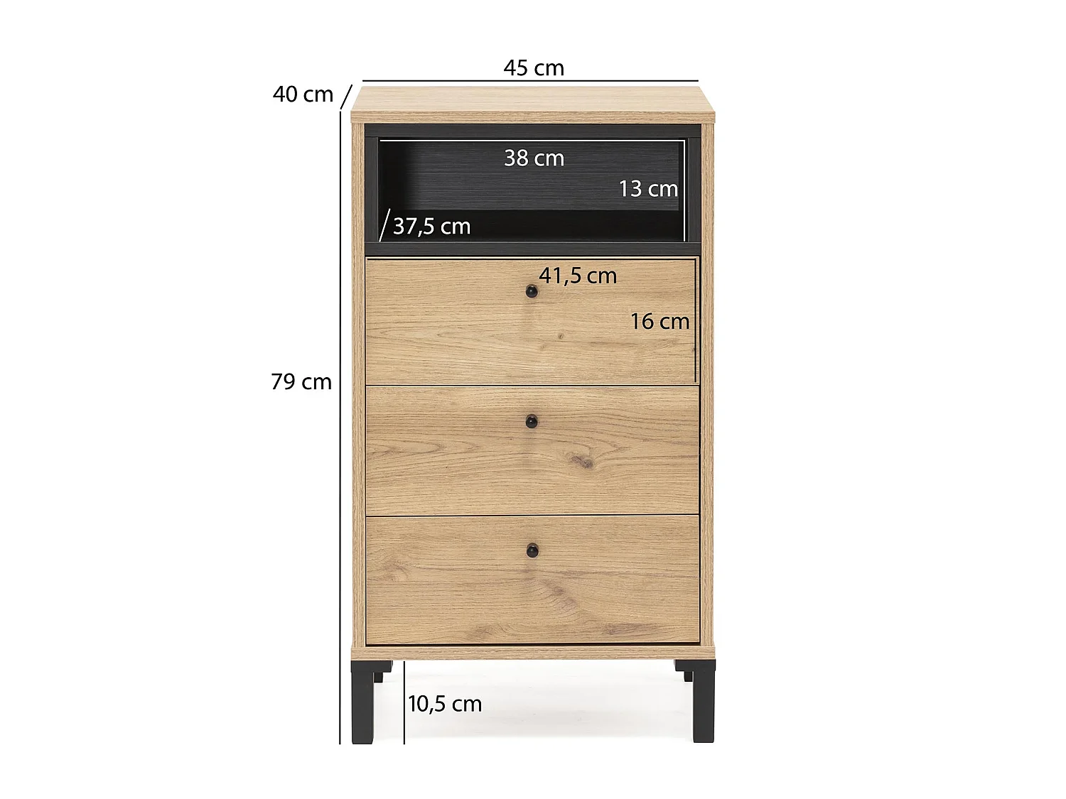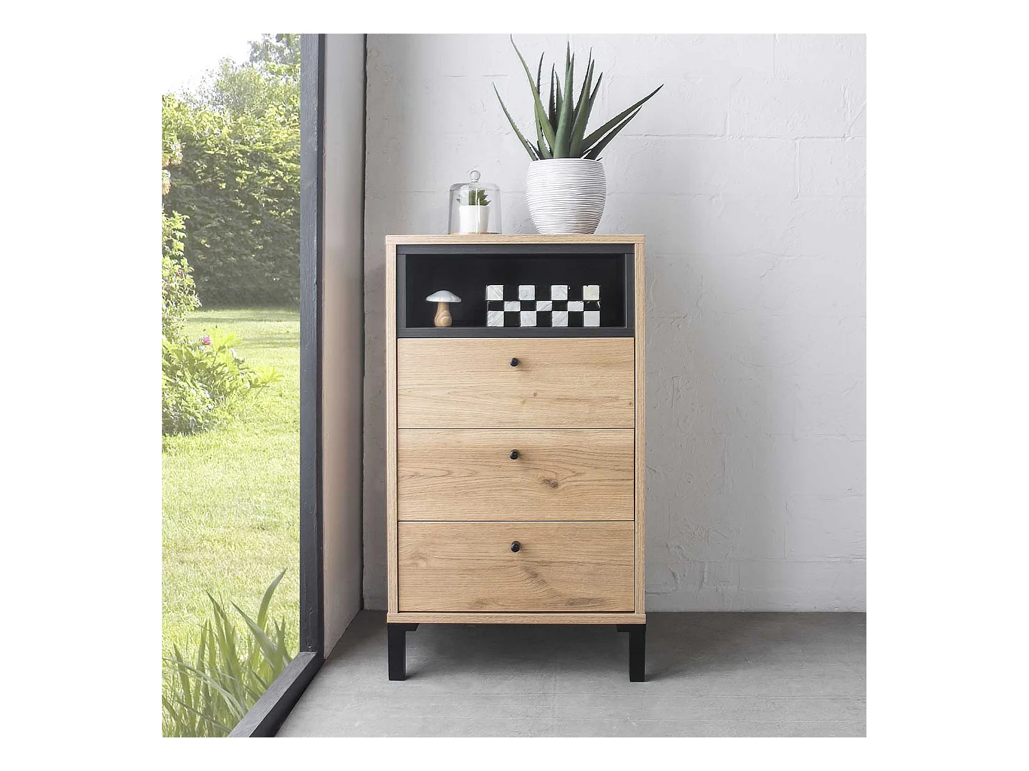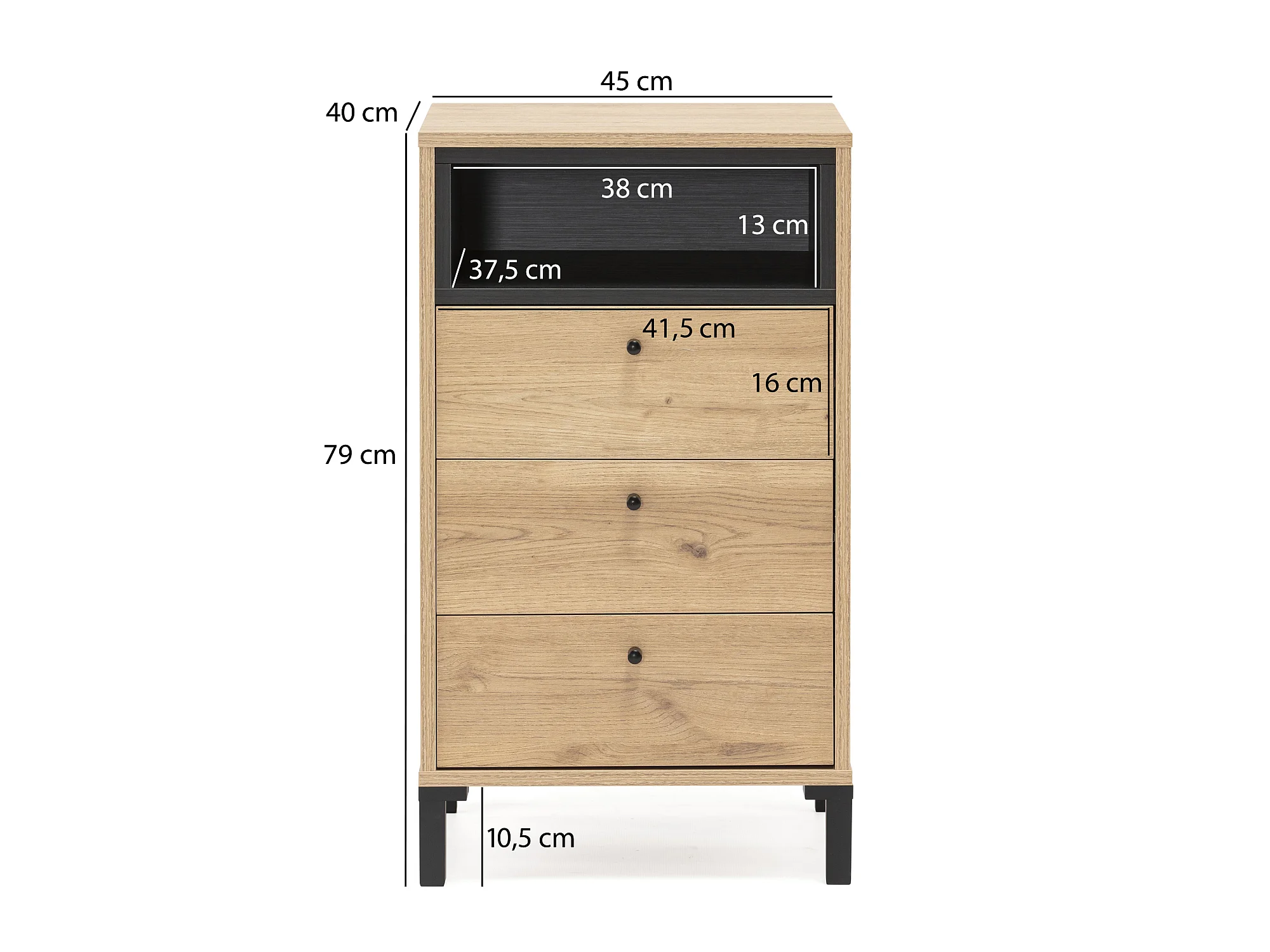 Chiffonnier Javea 3 tiroirs et 1 Niche, Couleur Bois et Noir, 45 cm Largeur