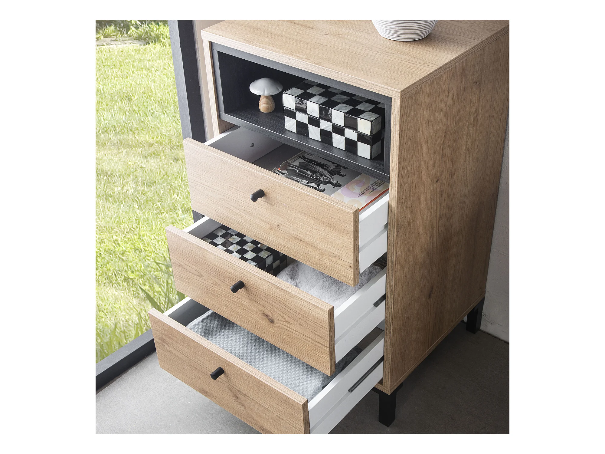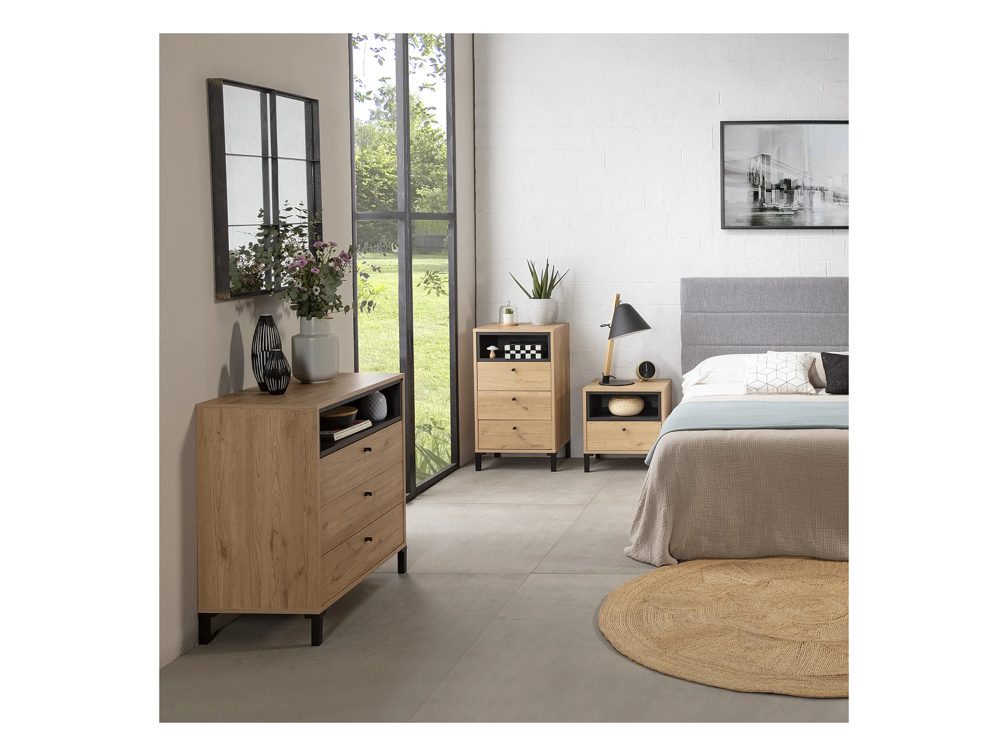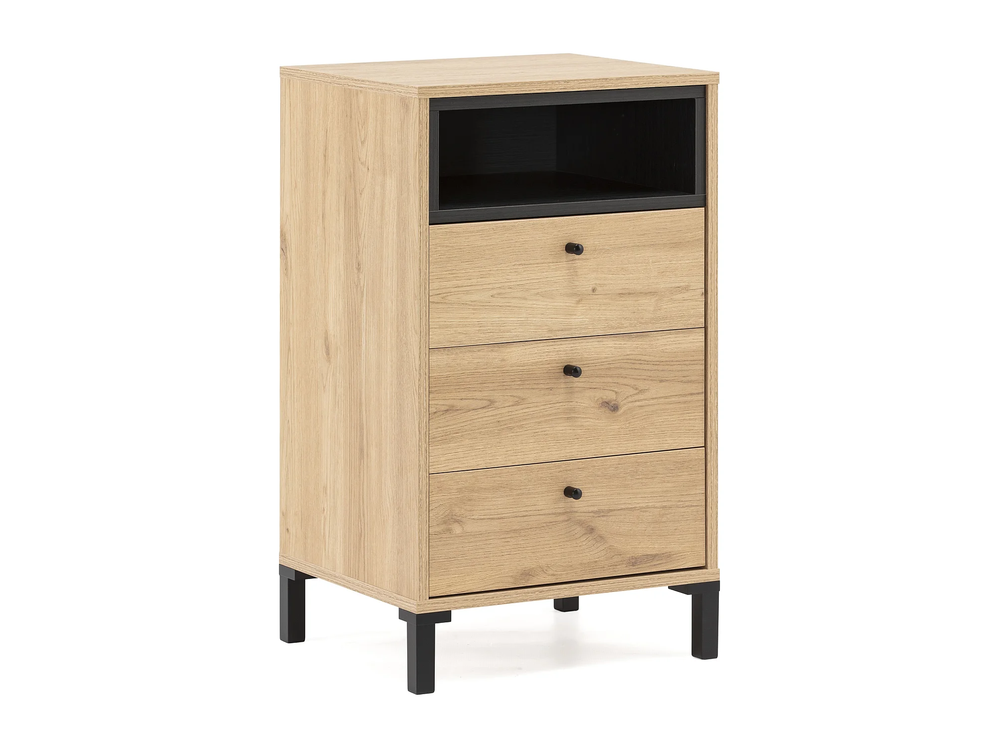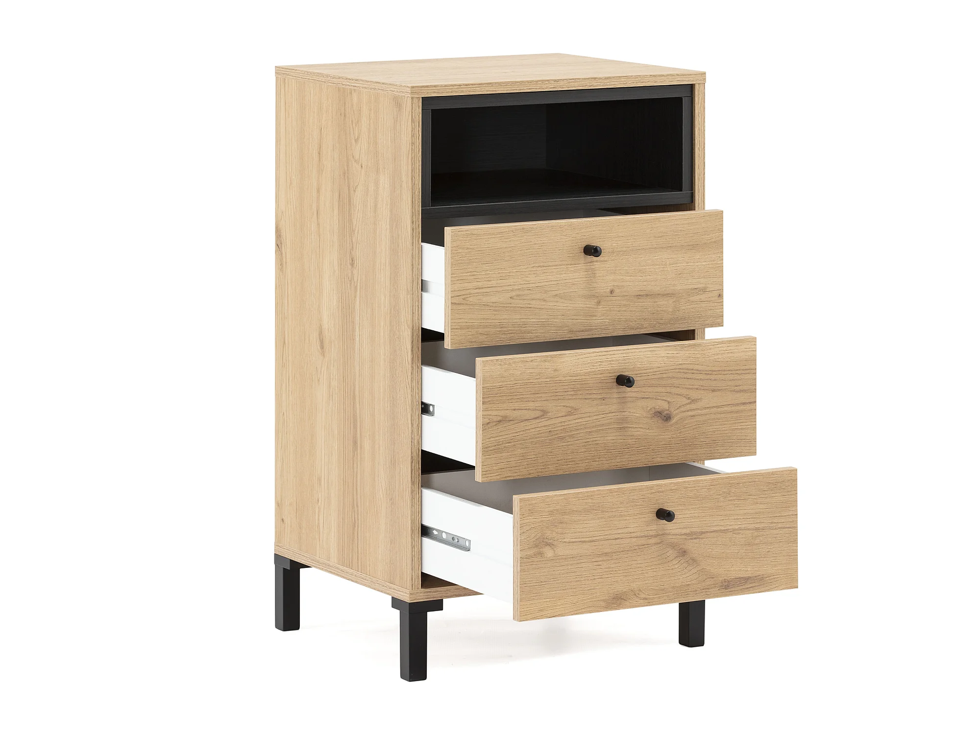 Chiffonnier Javea 3 tiroirs et 1 Niche, Couleur Bois et Noir, 45 cm Largeur