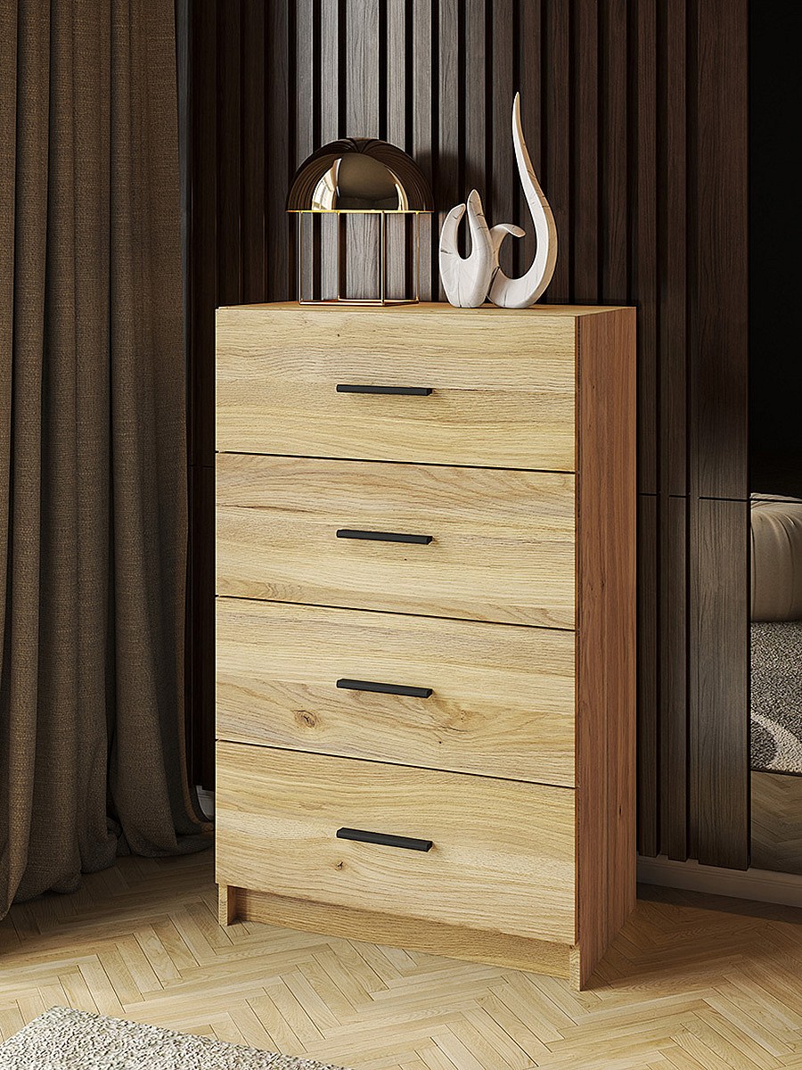 Chiffonnier, meuble de rangement avec 4 tiroirs coloris chêne Mauvella - Longueur 60 x profondeur 34,40 x hauteur 100 cm