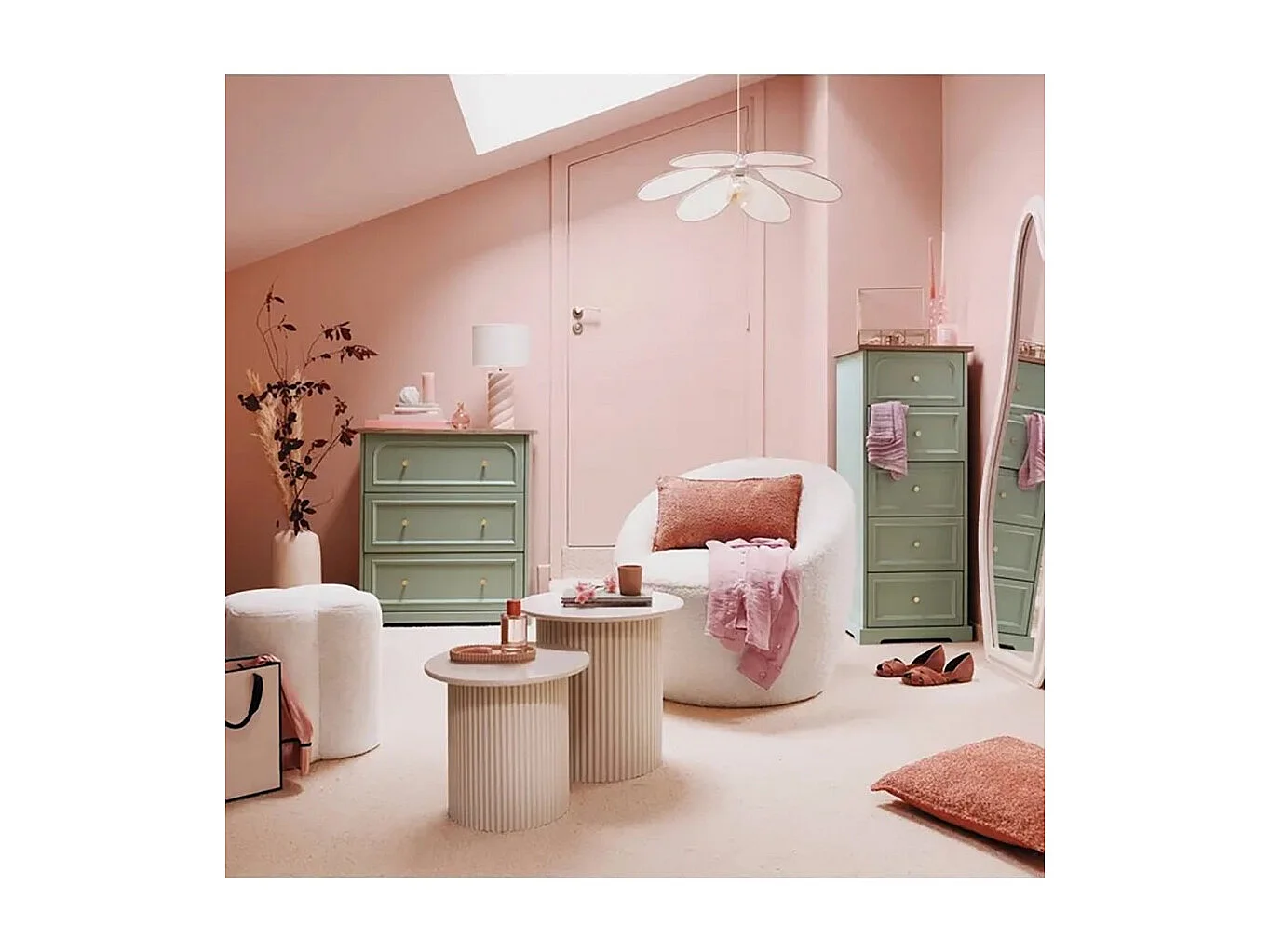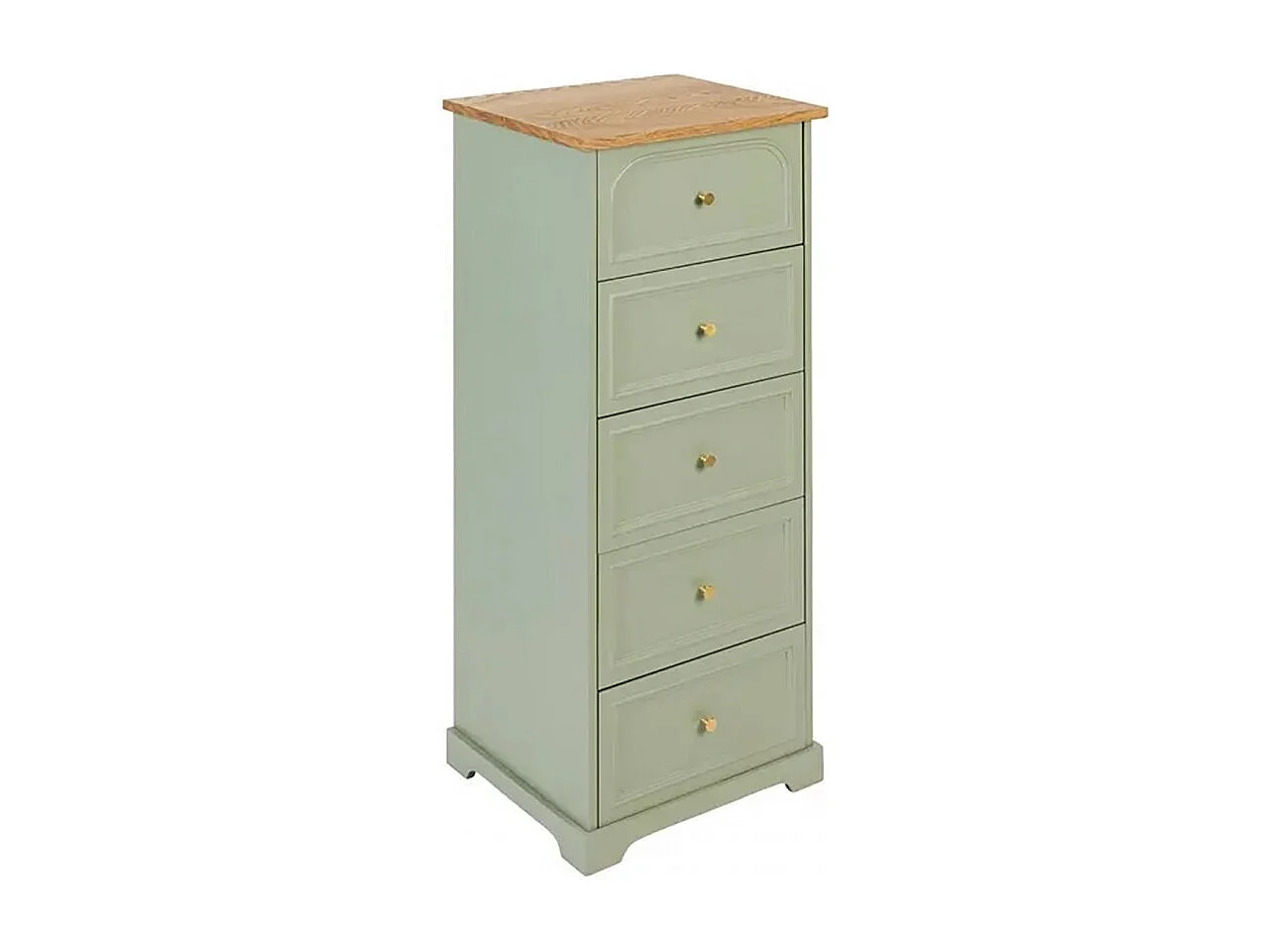 Chiffonnier meuble de rangement avec 5 tiroirs, Vert Céladon - Longueur 45 x Profondeur 39 x Hauteur 113 cm