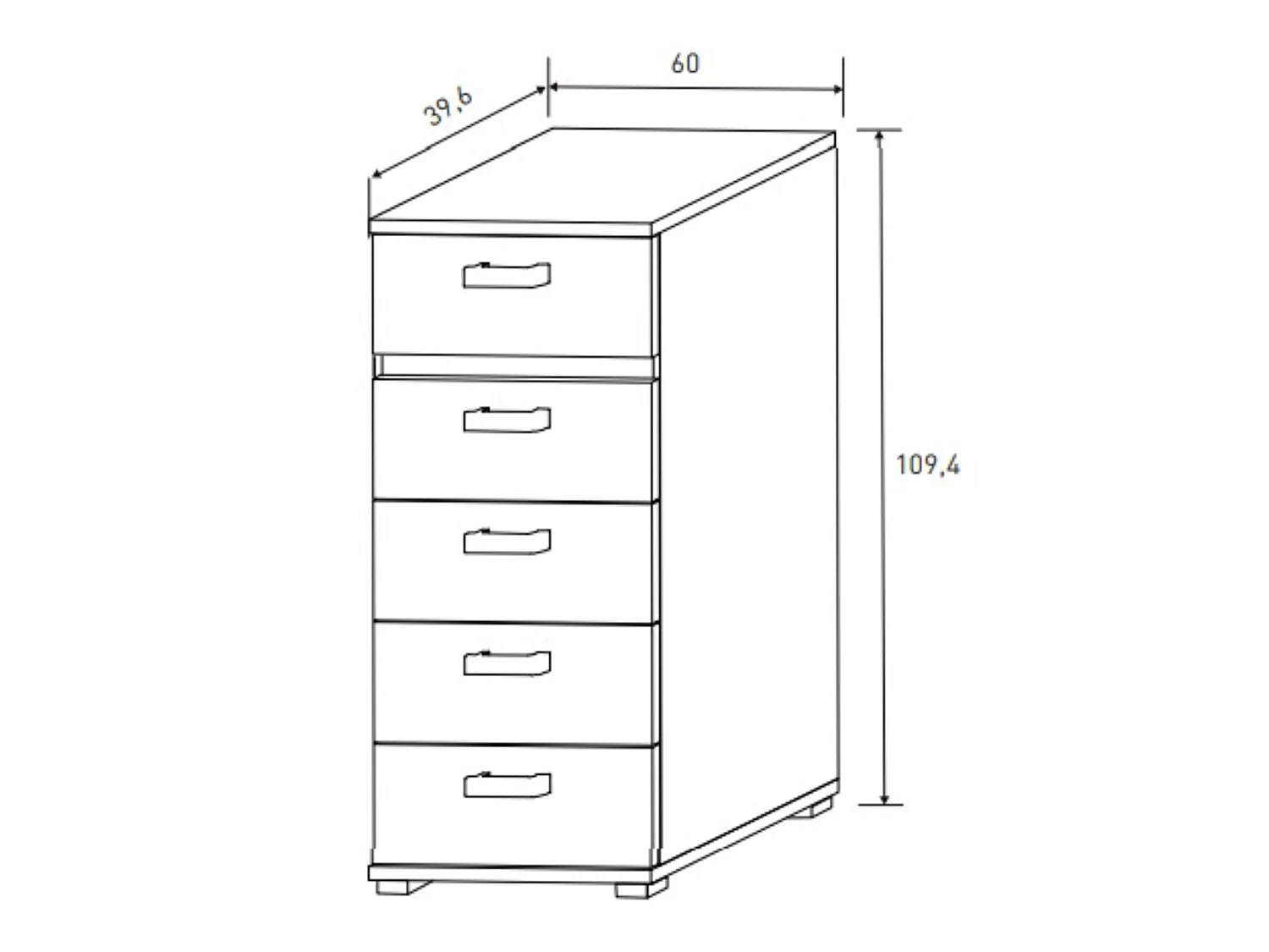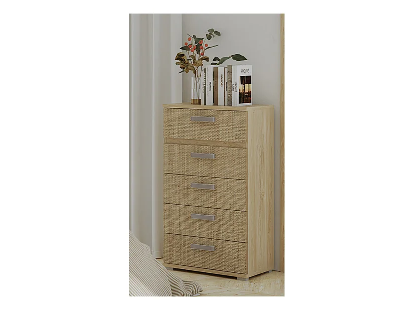 Chiffonnier , meuble de rangement coloris chêne cambrian/effet textile - Longueur 60 x Profondeur 39.6 x Hauteur 109.4 cm