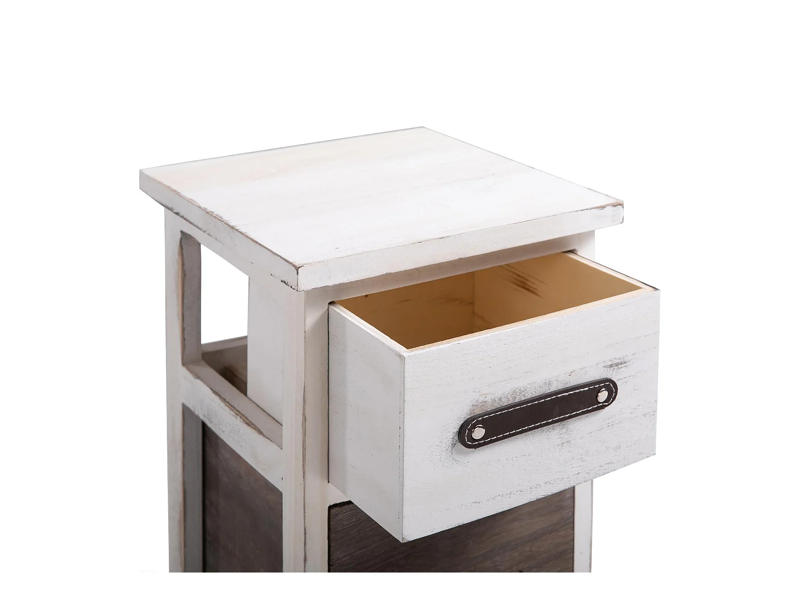 Table de chevet PERUGIA table de nuit 1 tiroir et 2 paniers en bois de paulownia style shabby chic vintage rustique campagnard blanc