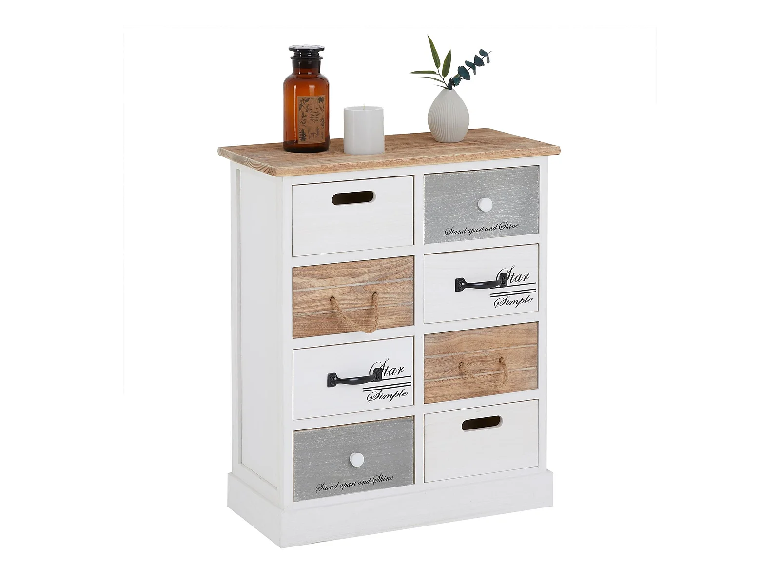 Commode chambre SALVA L 54 cm en bois massif blanc et brun avec 8 tiroirs meuble rangement style shabby chic