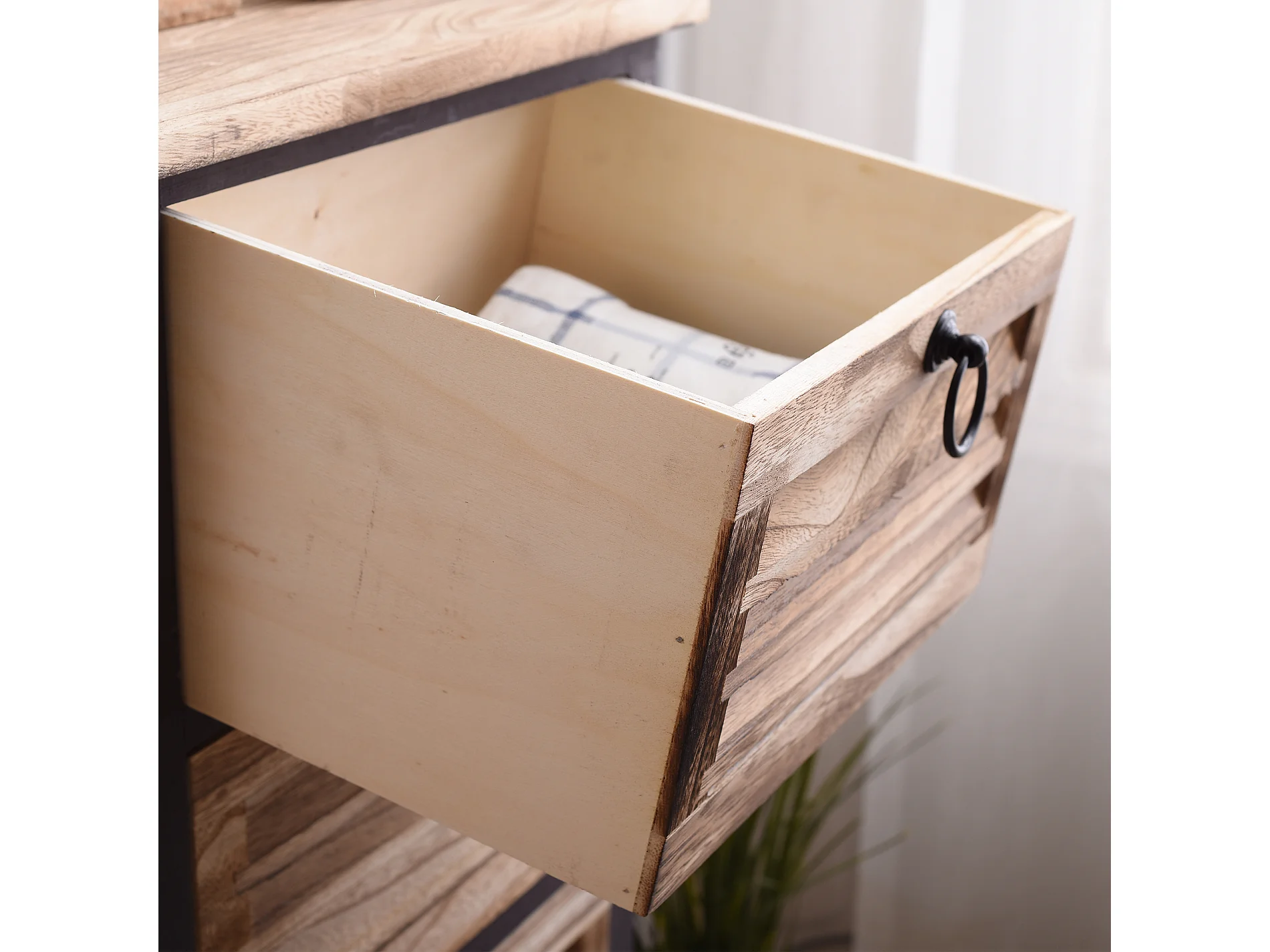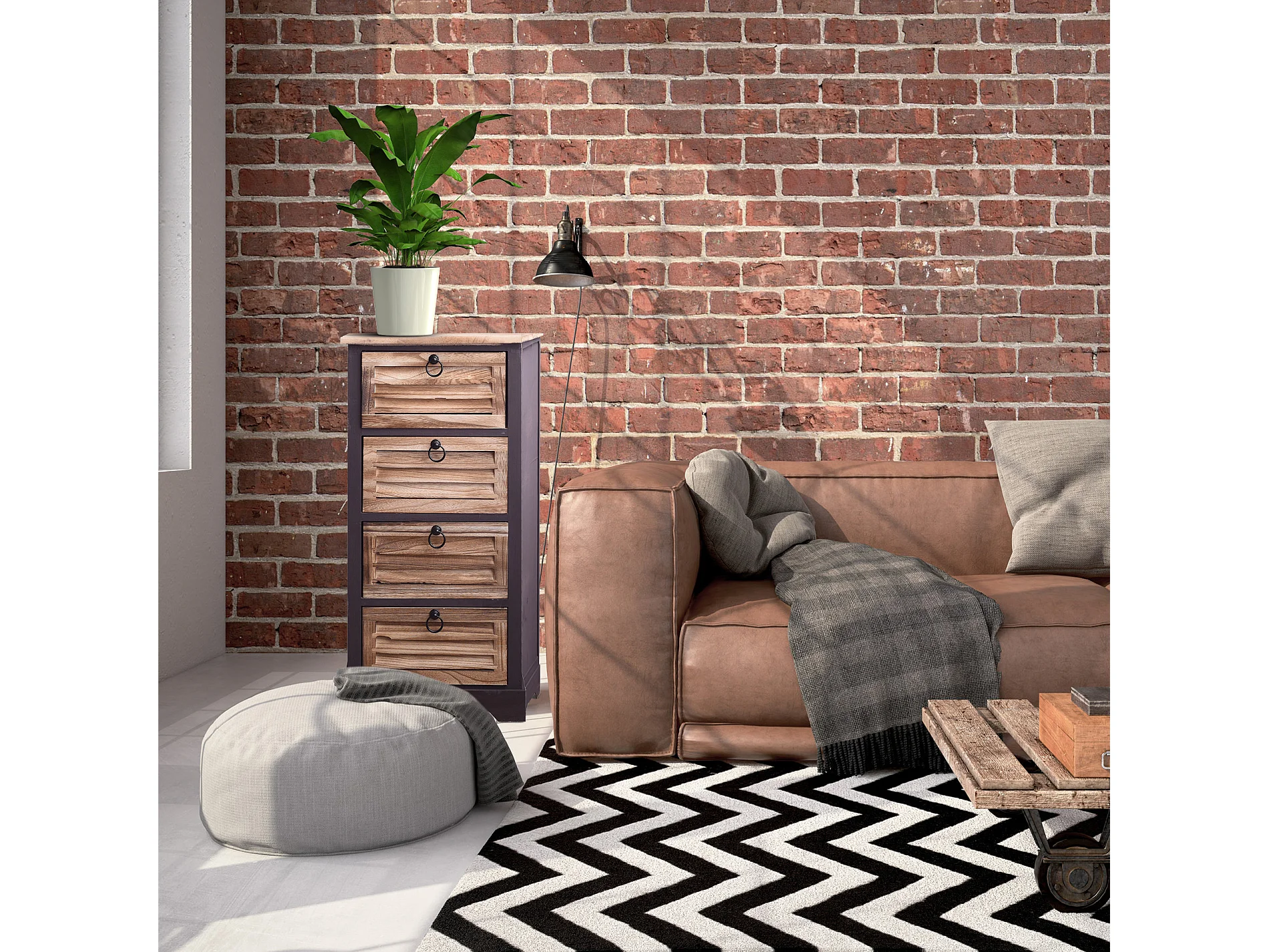 Chiffonnier Table De Nuit 4 Tiroirs Bois Marron Noir 81x40x27