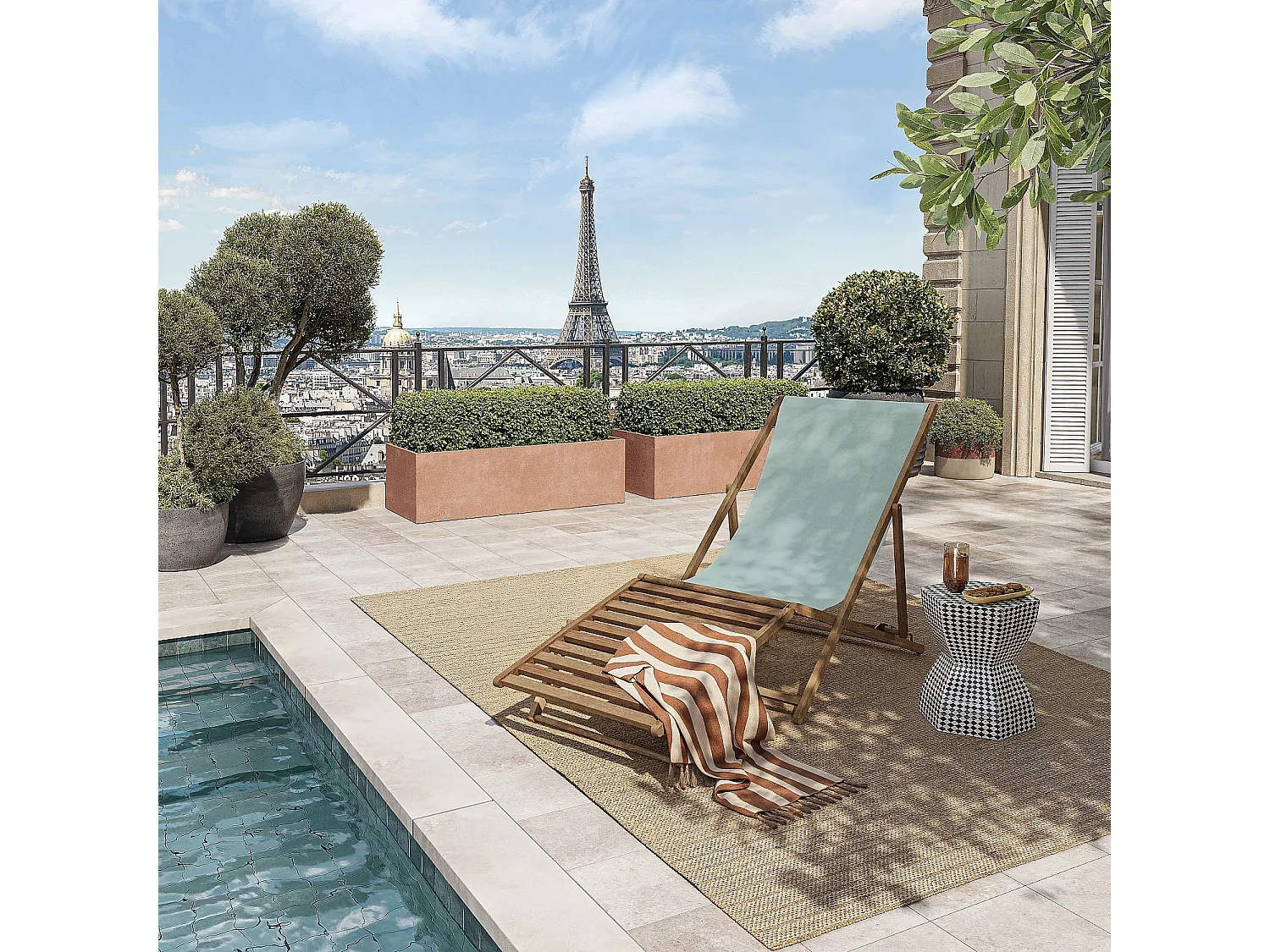 Chilienne en chêne et toile en coton avec repose-pieds - Vert céladon